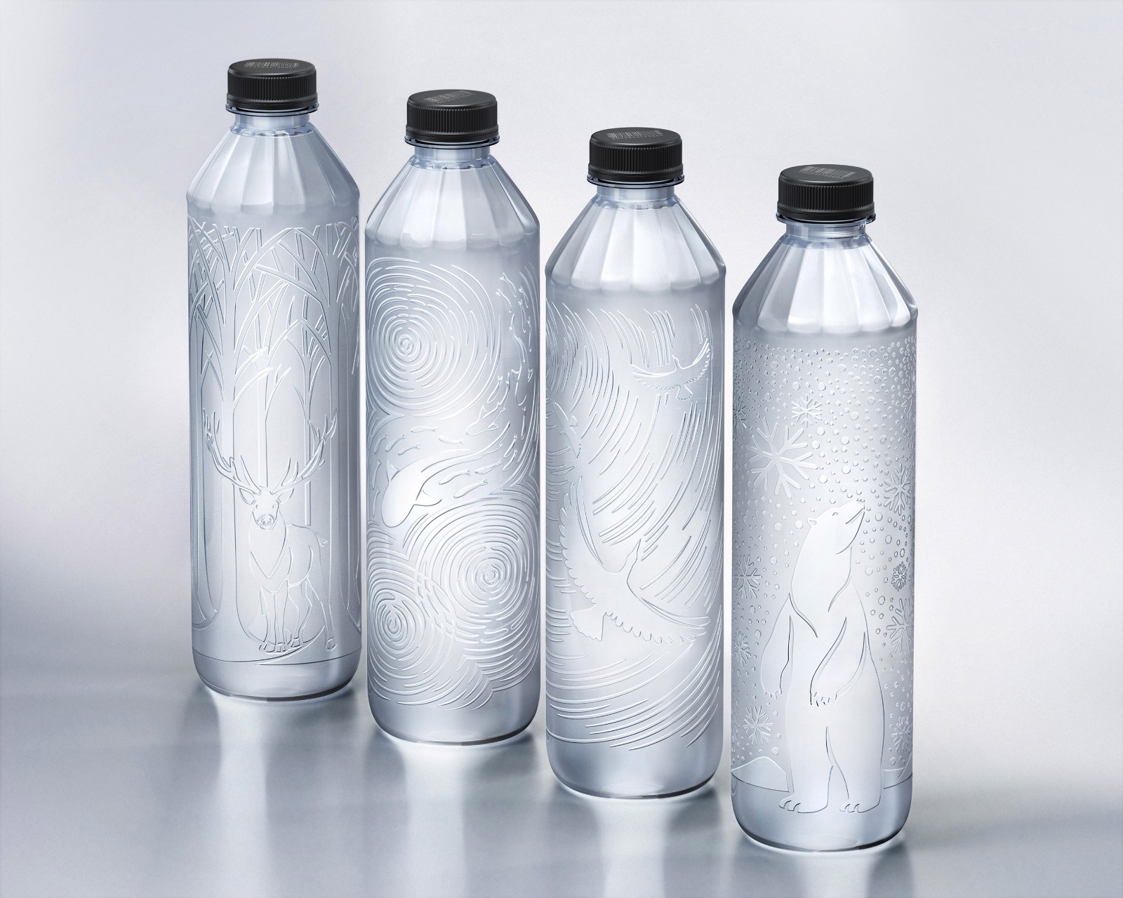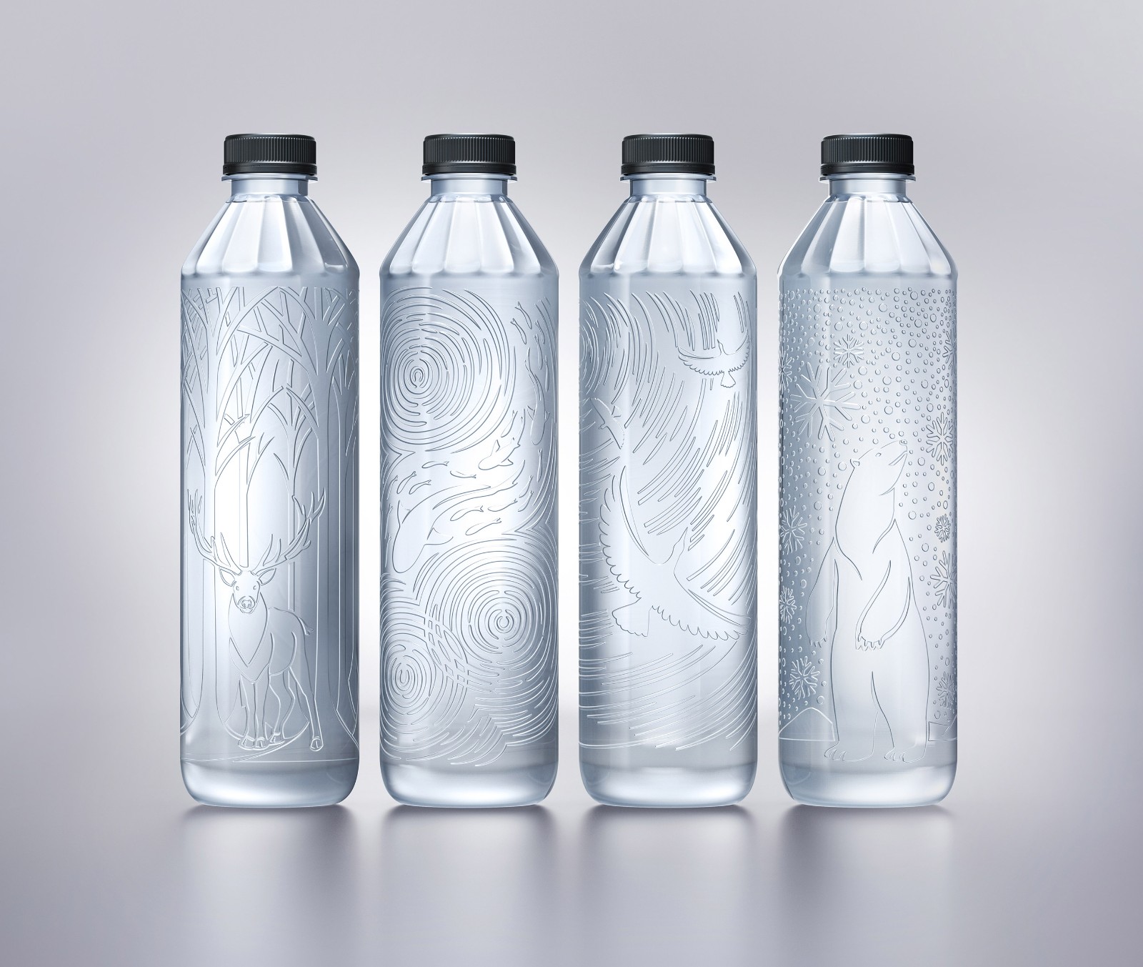 解決問題:為了解決這些問題,我們將所有法律要求的信息壓印在瓶身上,并在瓶蓋上打印條碼。此外,我們打算展示一組設(shè)計(jì)圖案,展示自然界中有趣的動(dòng)物棲息地,并讓這些圖片(例如森林中的鹿,雪中行走的北極熊,天空中飛翔的鳥等)解釋其美環(huán)境的。