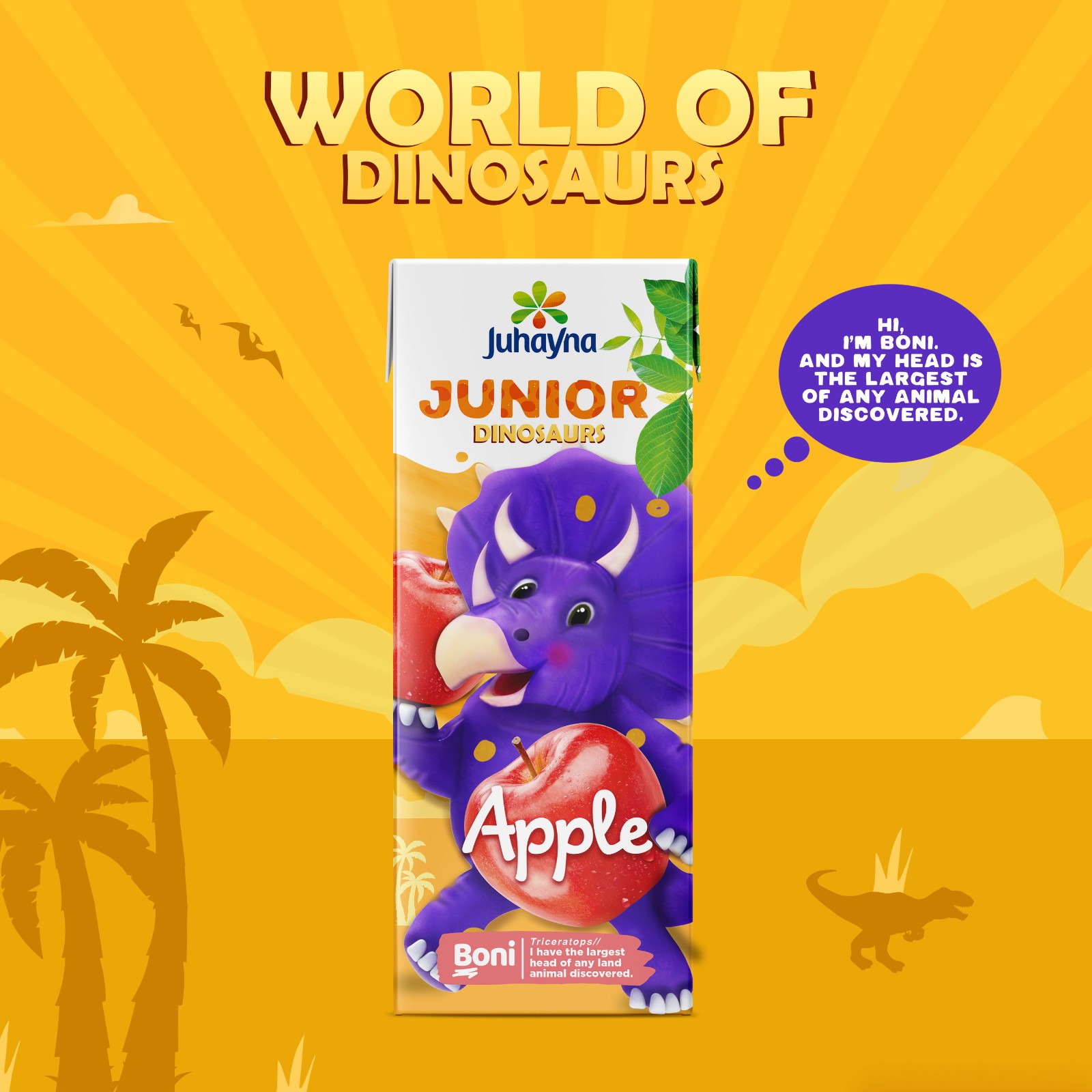 我們首先對Junior標(biāo)志進(jìn)行了全面改造,以鮮明的顏色選擇反映恐龍凹凸和鱗片般的皮膚紋理,始終在包裝上脫穎而出。。每一個包裝都是關(guān)于恐龍的不同分類的信息,將每個角色的世界與風(fēng)味的水果結(jié)合在一起。根據(jù)客戶反饋選擇恐龍口味對兒童選擇果汁有很大影響。