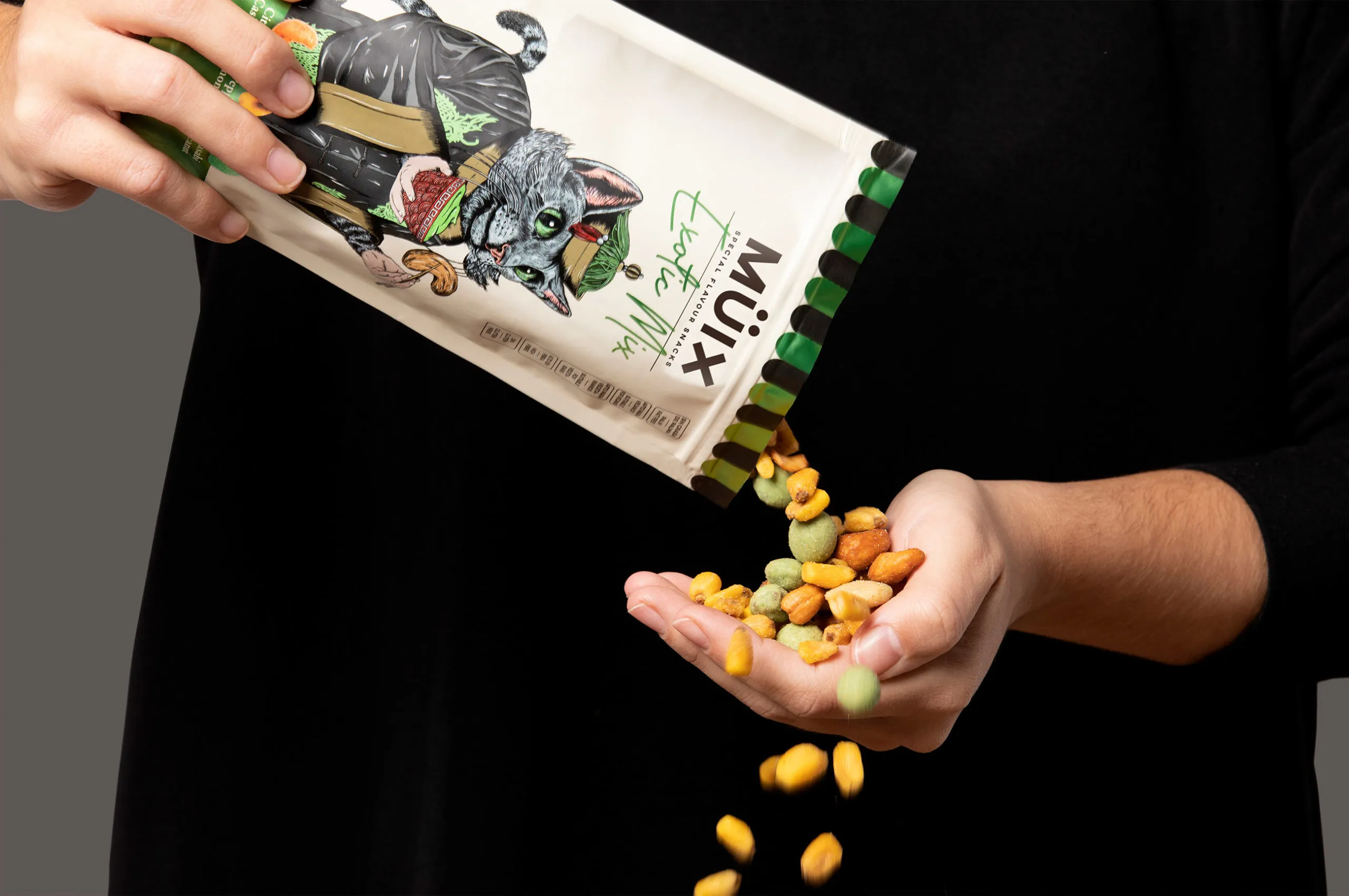 Barquellas零食品牌和包裝設(shè)計項目Müix。一個巴倫西亞品牌的美味堅果,一個大膽的創(chuàng)新,組合和口味的賭注,以喚醒感覺和樂趣,扭轉(zhuǎn)了該公司的家庭傳統(tǒng)。該系列包括兩個不同的類別,民主和高級。