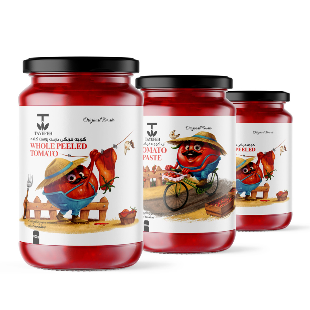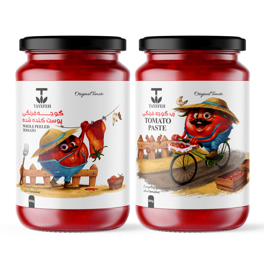 Tayefeh 品牌是食品生產(chǎn)領(lǐng)域的老品牌,這也是品牌名稱來(lái)源于傳統(tǒng)伊朗名稱的原因。在提供新產(chǎn)品時(shí),該品牌有兩個(gè)重要的優(yōu)質(zhì)產(chǎn)品在市場(chǎng)上銷售:去皮番茄和第二番茄醬。因此,根據(jù)所做的研究,決定為這些產(chǎn)品使用個(gè)人插圖,但更精確的目標(biāo)是這些圖像表現(xiàn)出健康和活力,并且設(shè)計(jì)得非常具體。