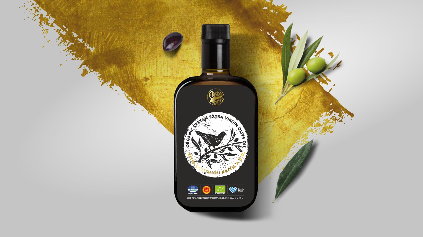 Elasion公司的有機克理坦特級初榨橄欖油P.D.O.新產品標簽是我們團隊最近的設計項目之一。