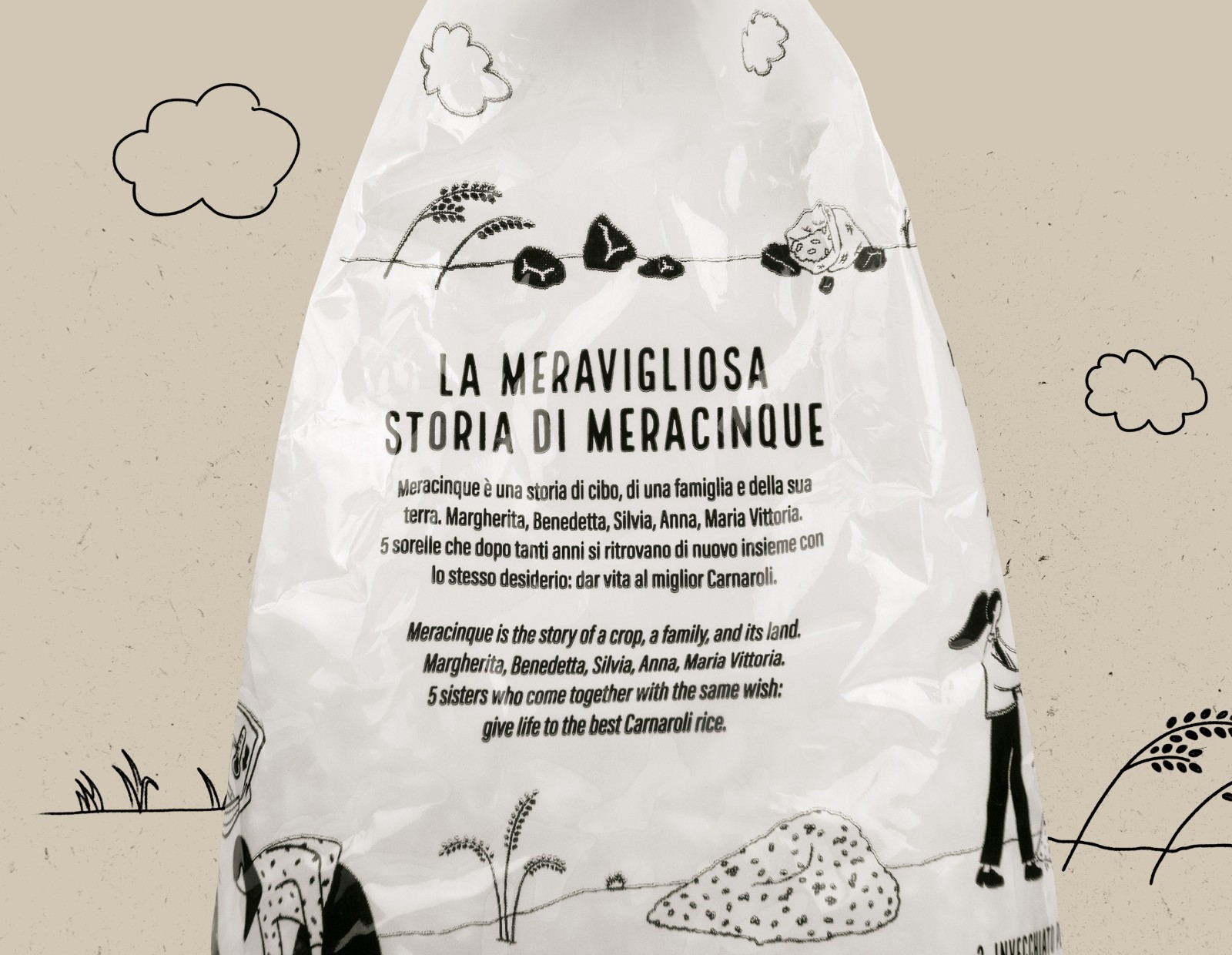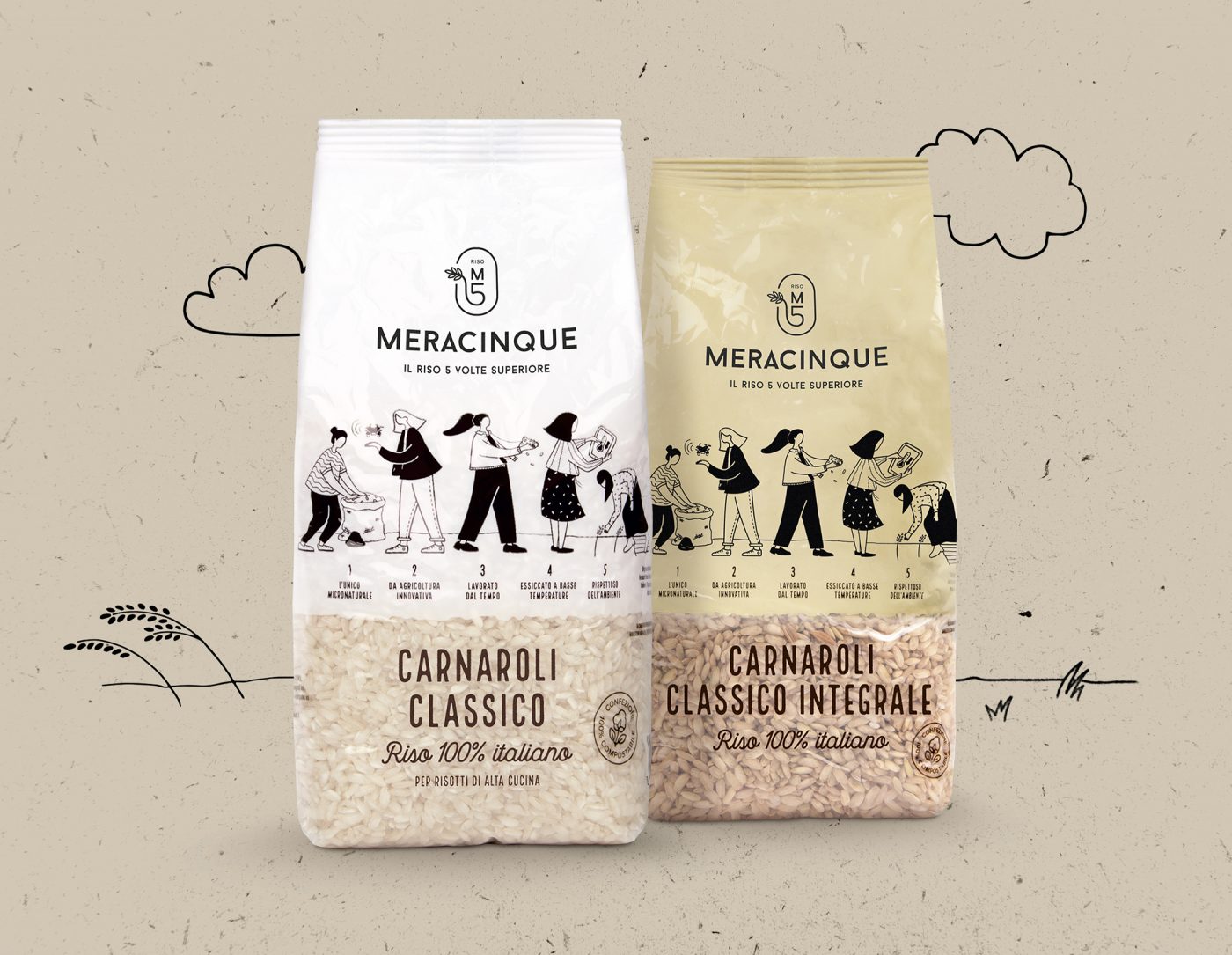 Meracinque 項目是幾年前由 Silvia、Benedetta、Vittoria、Anna 和 Margherita 發(fā)起的:五位姐妹在共同的熱情的驅(qū)使下,多年后決定改變自己的職業(yè)道路,共同努力實現(xiàn)她們的夢想最好的 Carnaroli 米飯。直到幾個月前,Meracinque 大米還只在 Horeca 市場上銷售,在意大利最著名的廚師那里獲得了巨大的成功。為什么不擴(kuò)大規(guī)模,讓消費者享受這些獨特的谷物呢?因此,CBA 意大利隊首先與西爾維婭會面,然后與其他姐妹會面。