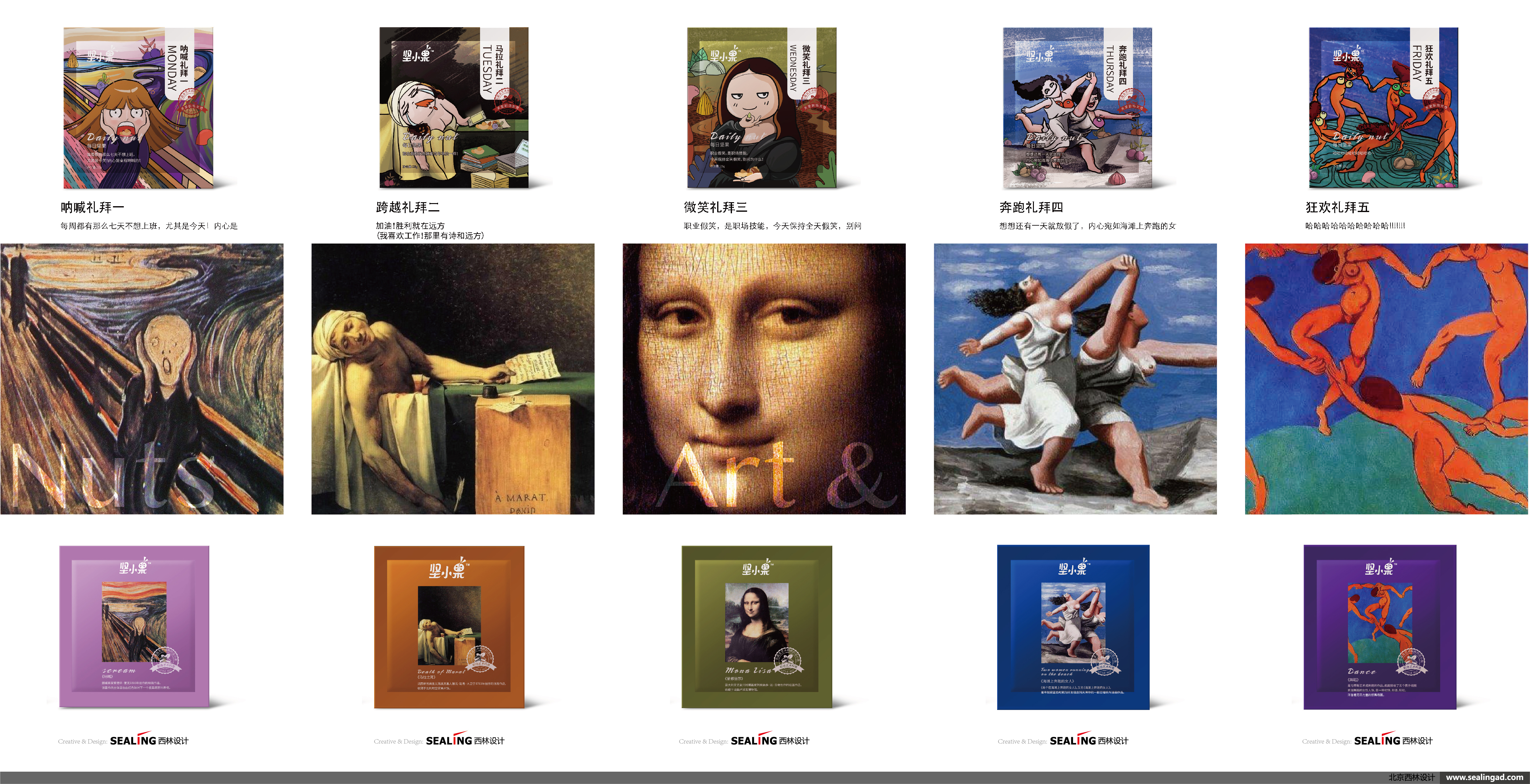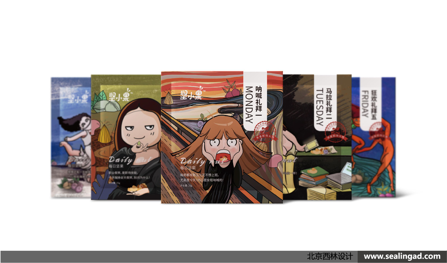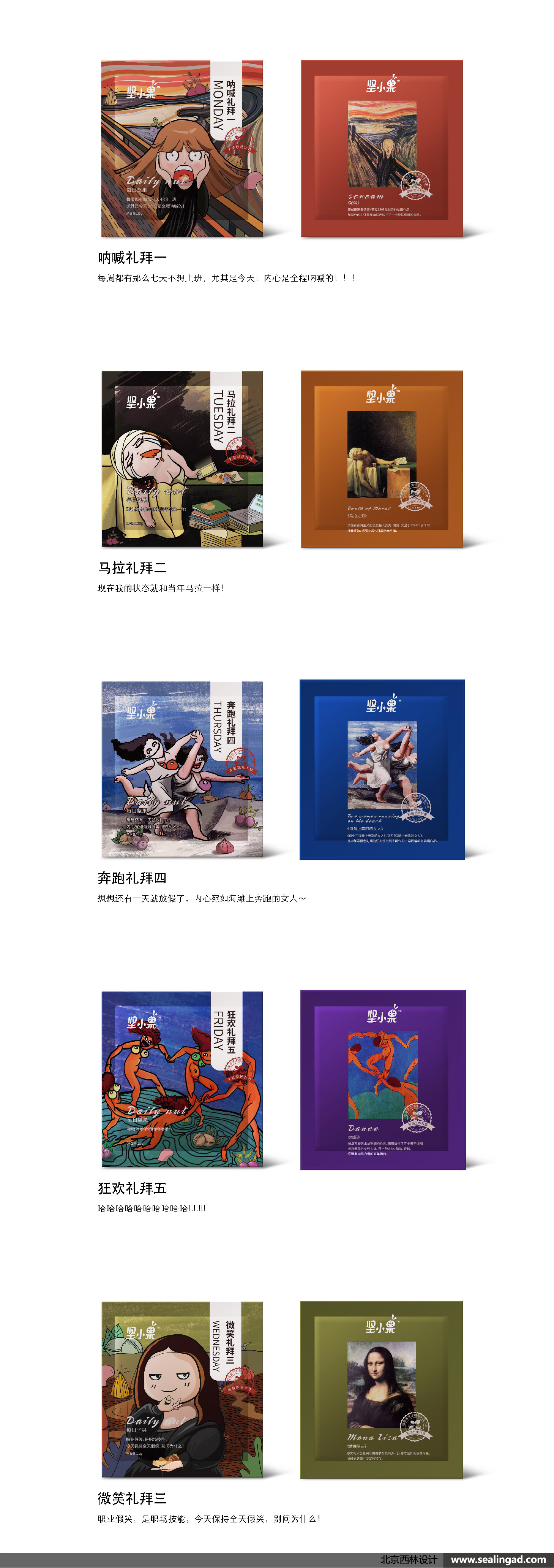 兼顧分享、減壓、補充營養(yǎng)的堅小果,就是這么帶感,此系列包裝靈感來源于多副傳世名畫,巧合上班簇們的內(nèi)心世界,打造一款受職場女性喜愛的爆款堅果。