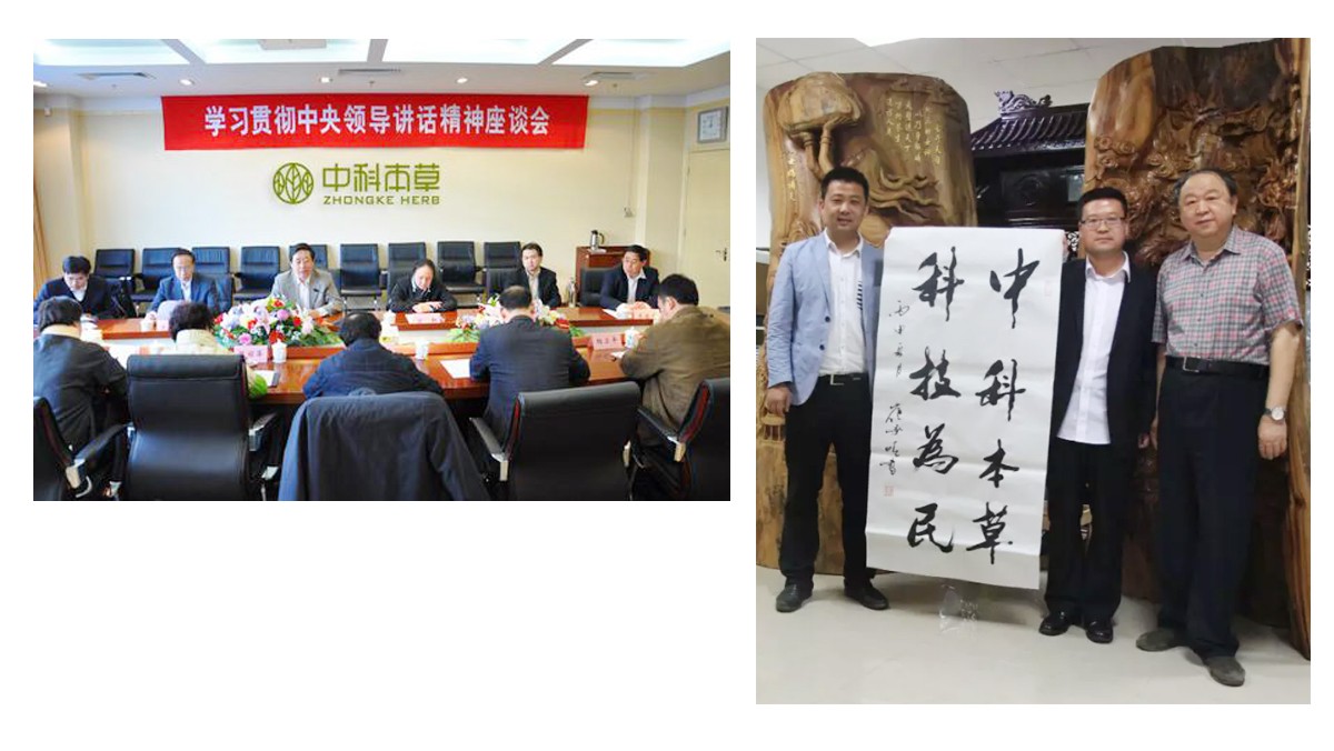 北京中國書畫協(xié)會常務(wù)副會長、中國科學(xué)院書法家協(xié)會主席 崔承順大師(右1)為中科本草題字