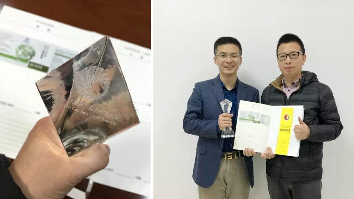 西林設(shè)計憑借為中科本草,所設(shè)計的“銀杏葉丹參膠囊”而榮獲2016年“太陽杯”亞洲標(biāo)簽大獎中醫(yī)藥保健類金獎!天津香江印制股份公司總經(jīng)理陳卓先生上臺領(lǐng)獎