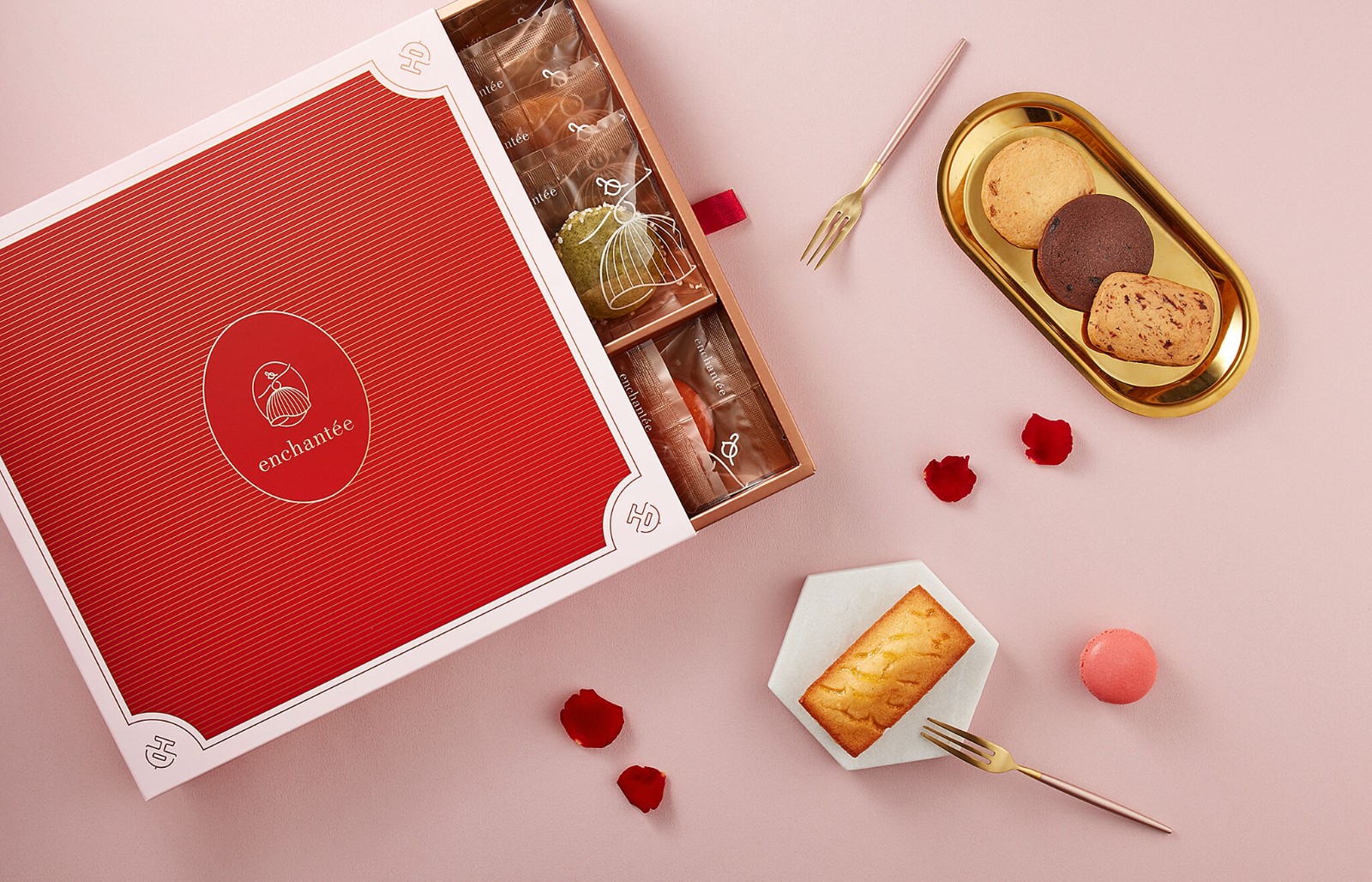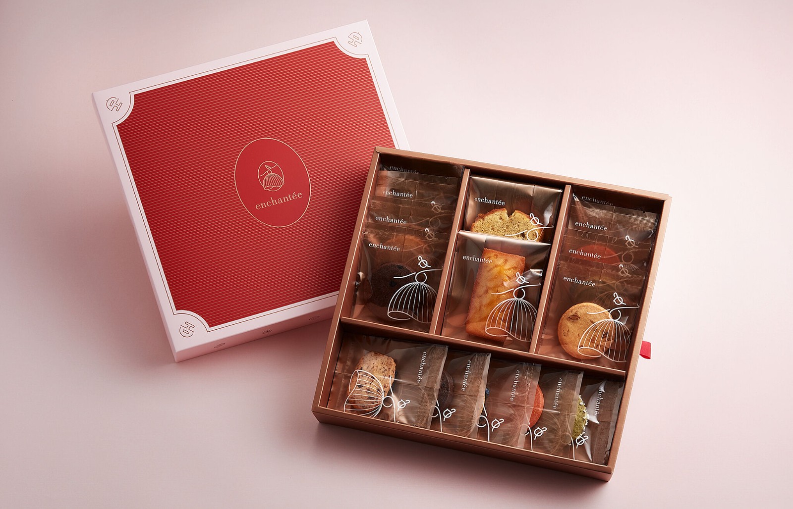 Enchantée是一個新的手工法國甜點品牌,面向婚禮禮盒市場。明亮的色彩和舞女的標(biāo)志表達了快樂和優(yōu)雅的品牌精神。這位戴著法式帽子的女士正在為即將到來的婚禮和甜點的美味而跳舞。她的短裙混合了馬德蘭的形狀。所有傳單和包裝都使用相同的配色方案和裝飾框架。無論何時在線瀏覽網(wǎng)站或收到有形印刷品和盒子,都能感受到一致的柔軟和優(yōu)雅。