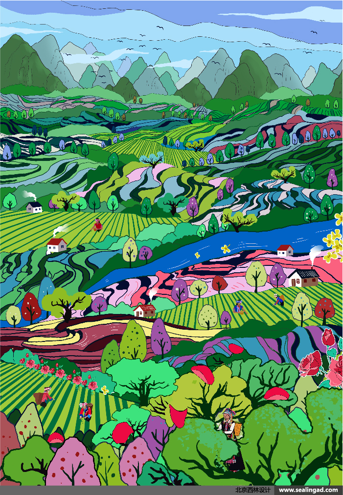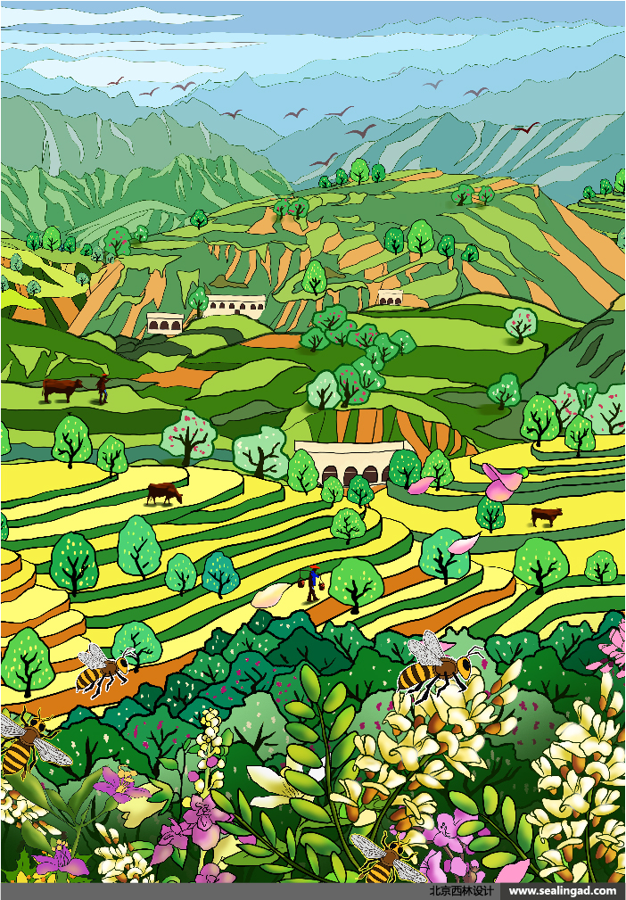 西域綠洲插畫(huà)采用了綠色調(diào)為主,給人直觀的綠色健康感,