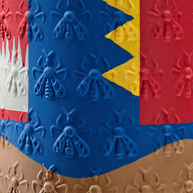 每一個(gè)蜂瓶瓶瓶口和瓶塞(Pochet du Courval)都由法國(guó)裝飾畫(huà)家Astrid de Chaillé手繪。它采用了馬蒂斯作品中的六種顏色和風(fēng)格化形式??偛课挥诎屠璧腖a Fabrique Singulière是手工藝人與奢侈品牌合作的專家,他支持嬌蘭的項(xiàng)目。