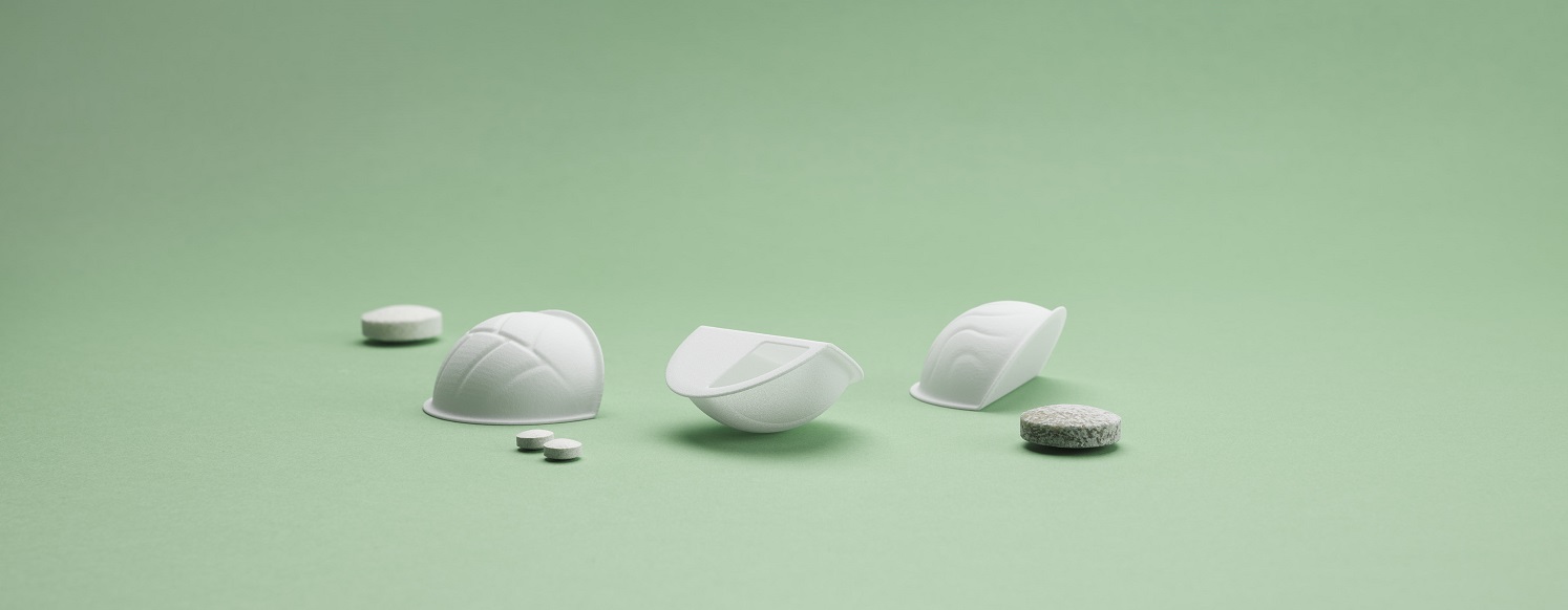 作為 Trific 協(xié)作包裝項(xiàng)目的一部分創(chuàng)建的旅行套裝將干化妝品包裝在成型纖維外殼中。該原型在六個(gè)月內(nèi)開發(fā)完成,旨在展示協(xié)作如何加速開發(fā)新型可持續(xù)高端美容包裝,以替代硬質(zhì)塑料。