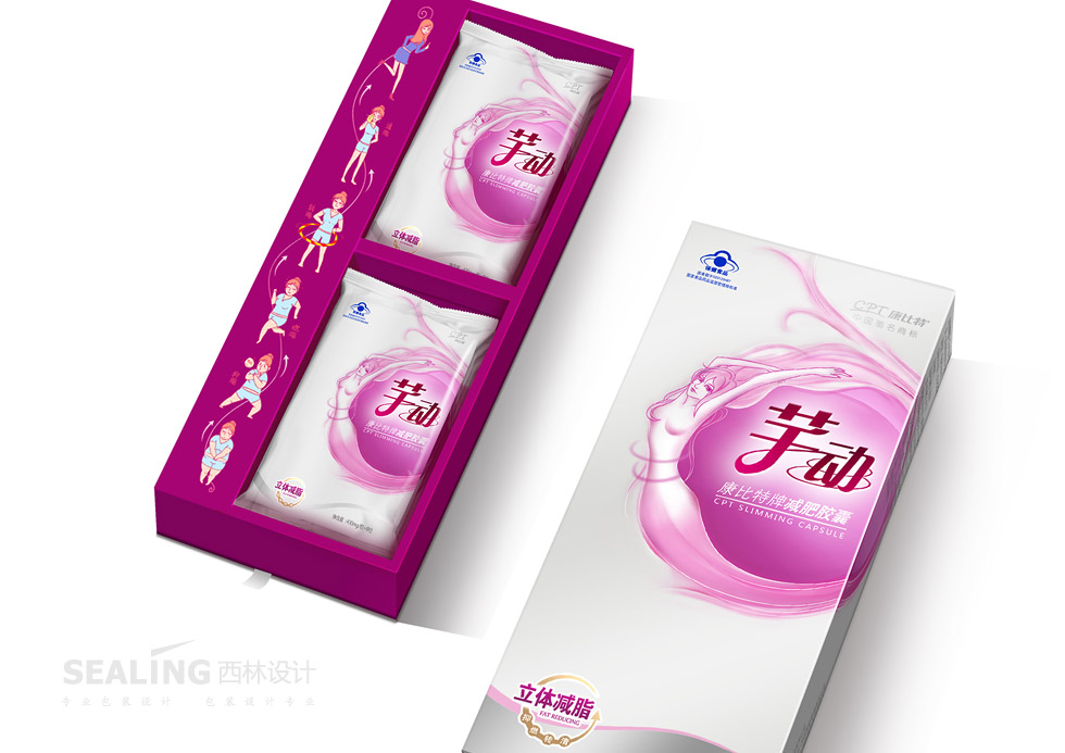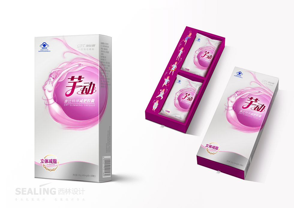 項(xiàng)目背景:康比特芊動(dòng)產(chǎn)品的研發(fā)是直面當(dāng)前“減肥10大因擾”的,在全國(guó)首創(chuàng)360度“抑-燃-轉(zhuǎn)-清”全方位立體減脂概念。要求西林設(shè)計(jì)為產(chǎn)品量身創(chuàng)作產(chǎn)品包裝,力求高檔、時(shí)尚,適度體現(xiàn)減肥功效。