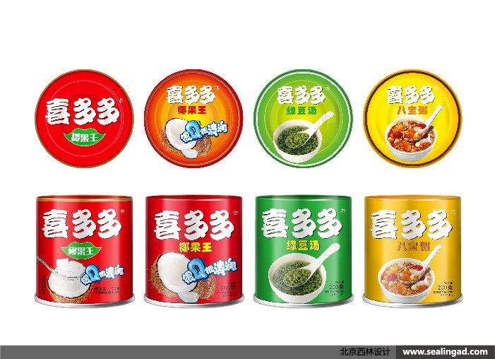 嚴謹?shù)漠a品線架構梳理,使整個產品系列形成大統(tǒng)一小區(qū)格,簡約中突出了喜多多品牌logo的同時,強化了品類和產品信息。極具視覺沖擊力和精致美味的感受