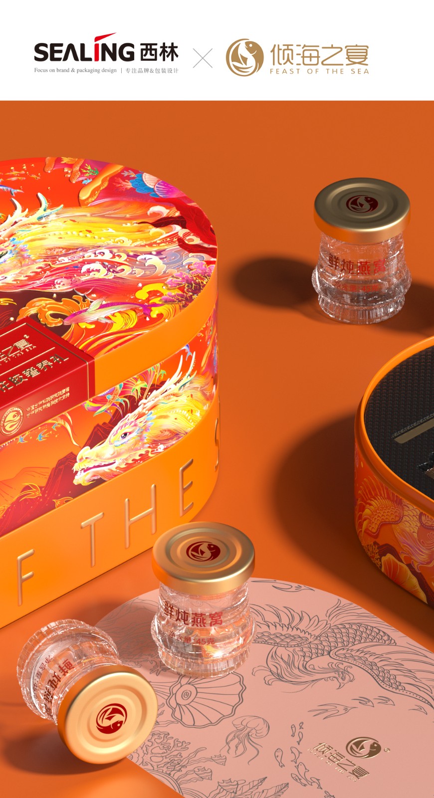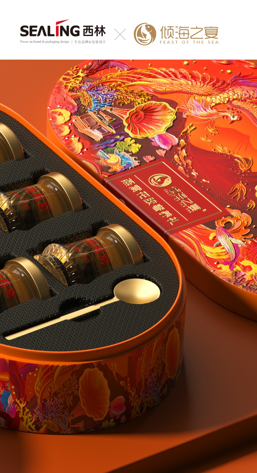 標(biāo)簽:西林設(shè)計(jì) 傾海之宴 龍年禮盒包裝設(shè)計(jì) 產(chǎn)品系列 燕窩包裝設(shè)計(jì) 超級符號 傾海龍 視覺印象 宣傳物料 產(chǎn)品包裝 新品發(fā)布會 燕窩花膠奢養(yǎng)禮盒 龍鳳齊聚 東方之韻 龍鳳文化 燙金工藝 高端形象 高端產(chǎn)品 花紋設(shè)計(jì) 浮雕圖案 龍舞九天 鳳鳴四海 龍鳳呈祥 傳統(tǒng)燕窩 海洋八福禮盒 品牌形象 品牌標(biāo)志 立體金標(biāo) 山海宴 山海宴禮盒 好海鮮包裝 慶余年禮盒 品牌包裝設(shè)計(jì)公司