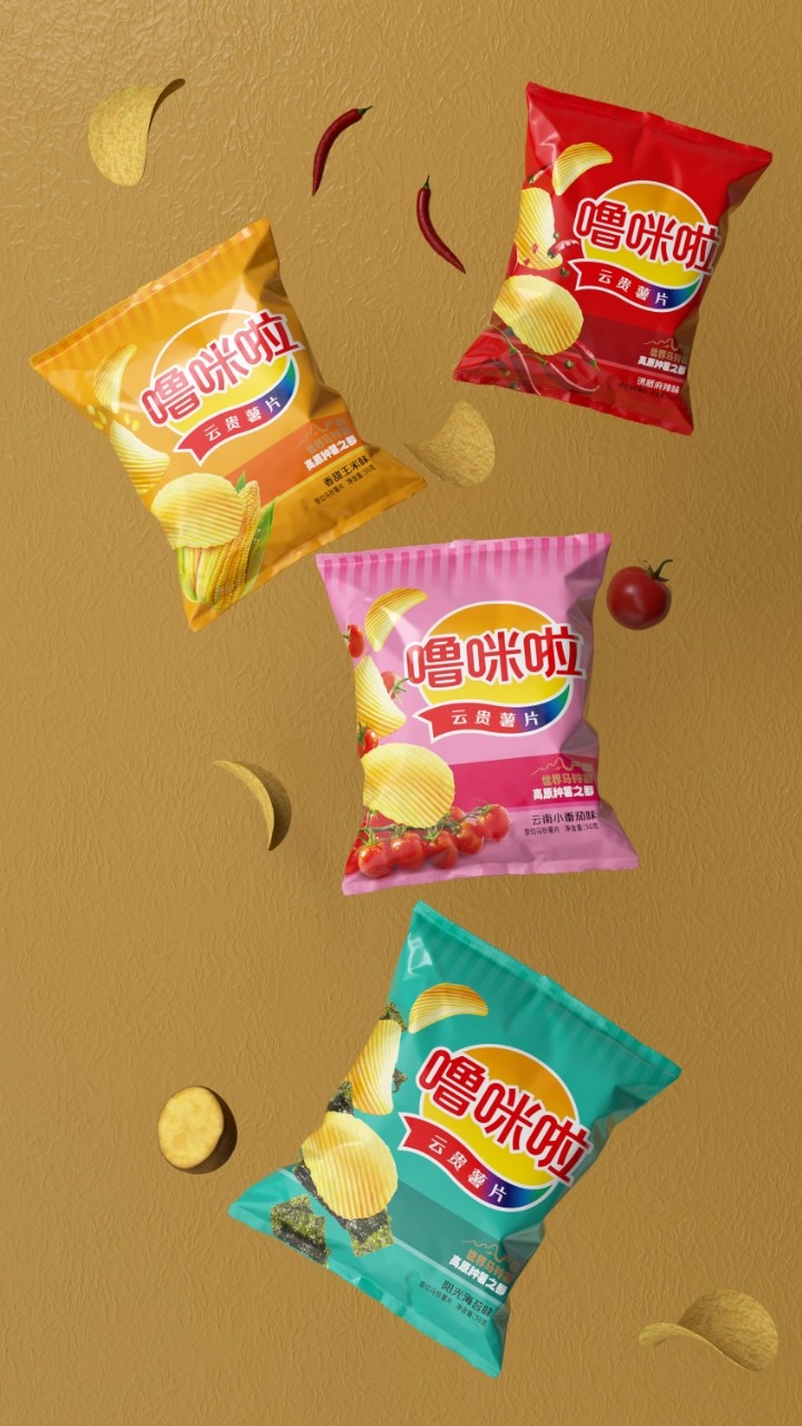 口號(hào)“云貴薯片,中國味道”更是擲地有聲,它將嚕咪啦的品牌定位與中國傳統(tǒng)文化緊密結(jié)合,傳遞出嚕咪啦對品質(zhì)的追求和對中國美食文化的傳承與弘揚(yáng)。 同時(shí),為了更好地實(shí)現(xiàn)品牌戰(zhàn)略定位,嚕咪啦對 logo 進(jìn)行了升級。新的 logo 更加簡潔大氣,富有現(xiàn)代感和藝術(shù)感,能夠更好地傳達(dá)嚕咪啦的品牌形象和價(jià)值觀。經(jīng)典薯片系列產(chǎn)品包裝也煥然一新,采用了更加時(shí)尚、環(huán)保的設(shè)計(jì)理念,既突出了產(chǎn)品的特色和品質(zhì),又符合現(xiàn)代消費(fèi)者的審美需求。更有全新黃金薯片系列產(chǎn)品重磅推出,這款產(chǎn)品以其獨(dú)特的口感和高品質(zhì)的原料,成為了發(fā)布會(huì)的一大亮點(diǎn),吸引了眾多嘉賓的關(guān)注和喜愛。