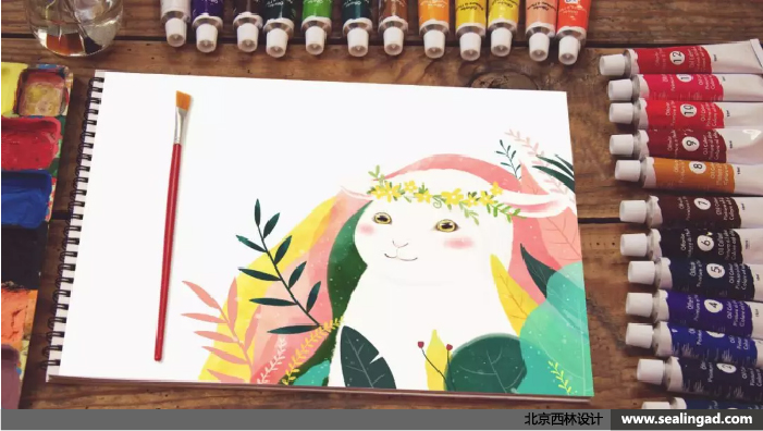 女士款,對(duì)羊進(jìn)行女性化設(shè)計(jì),色彩偏向于“粉”綠色的搭配增加畫面協(xié)調(diào)性