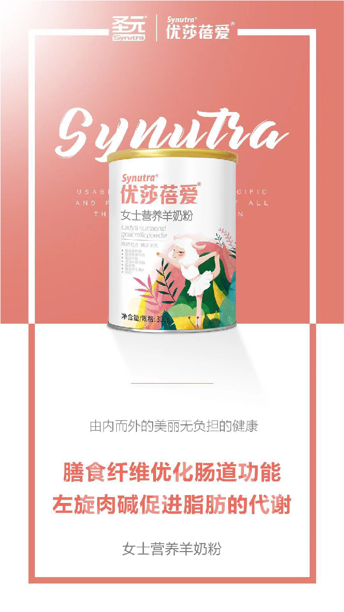 優(yōu)莎蓓愛是圣元旗下高端羊奶粉品牌,致力于為不同人群提供來自羊乳的優(yōu)質(zhì)營(yíng)養(yǎng)和多方位的健康呵護(hù),享受“樂”“養(yǎng)”人生。幾千年來,羊乳一直是中國(guó)古代貴族的滋補(bǔ)佳品。研究發(fā)現(xiàn),羊乳有獨(dú)特的蛋白質(zhì)、脂肪結(jié)構(gòu),易于消化吸收,而且含有多種有益物質(zhì),使得羊乳具有非常高的營(yíng)養(yǎng)價(jià)值,是適合中國(guó)人的營(yíng)養(yǎng)食品。