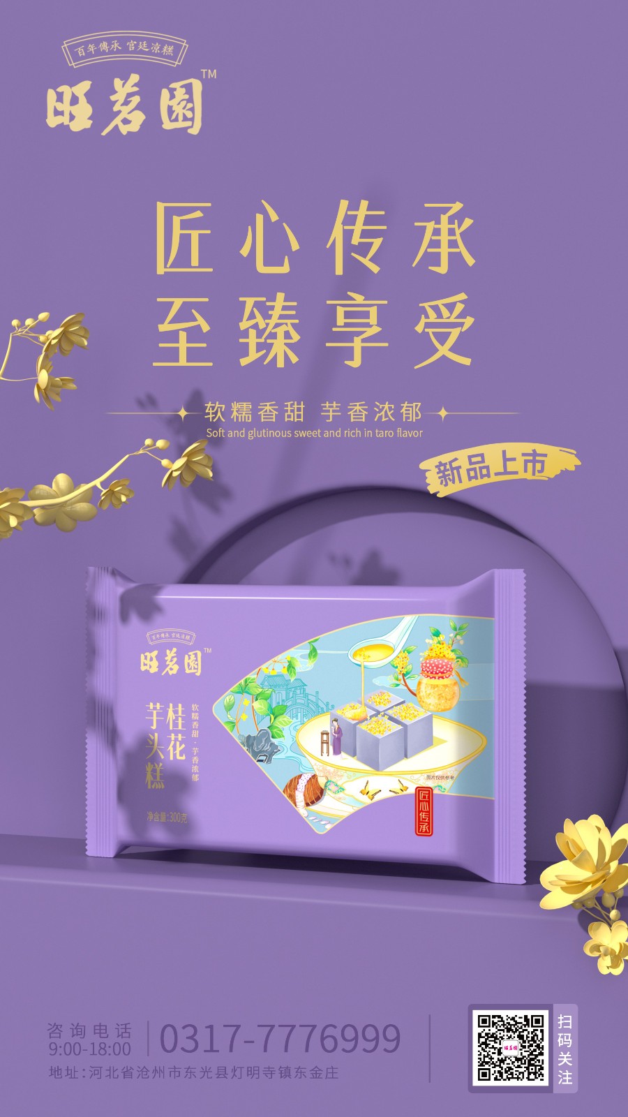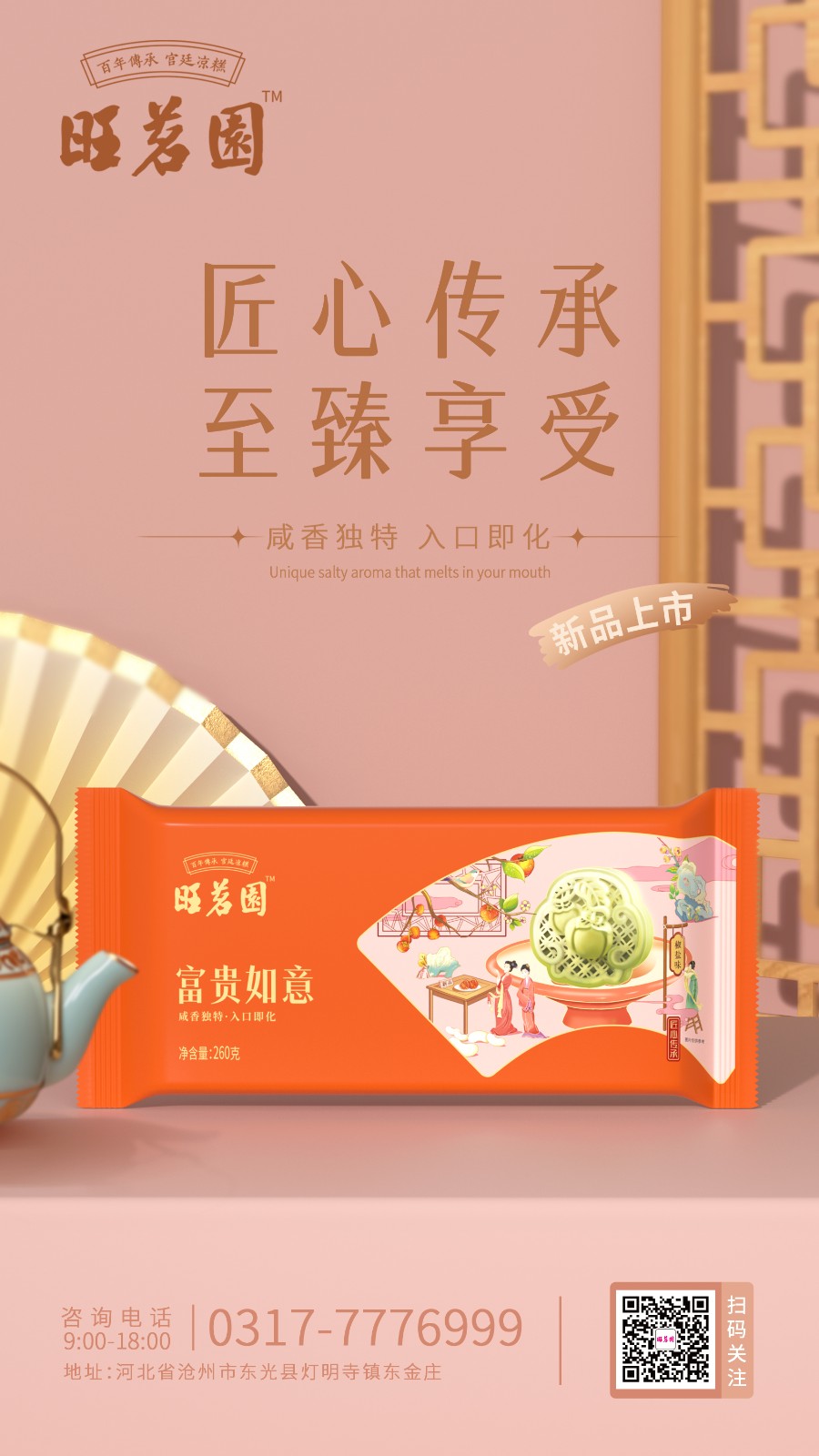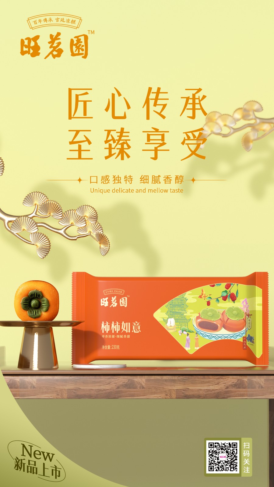 豌豆之韻,宮廷之味。旺茗園每一塊糕點都蘊含著初心和匠心,一段傳奇的故事,激勵著一代又一代人追求精湛技藝和卓越品質的信念。中華美食是民族文化最重要的組成部分,不僅代表了飲食習慣和風土人情,還承載著“飲和食德”的哲學思想。守人間至味、傳美食之道,旺茗園始終堅持“傳承百年工藝,打造品質美食”的品牌初心,以弘揚中華美食文化為使命,打造具有民族底蘊的世界品牌。