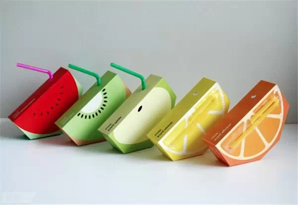 很多包裝中會(huì)用到水果元素來(lái)設(shè)計(jì),特別是在一些水果相關(guān)的產(chǎn)品,比如果汁飲品等等。譬如深澤直人的這款仿生“果汁皮”飲料包裝,就像是直接使用了香蕉、草莓、奇異果等的外皮。直觀到一眼便知。