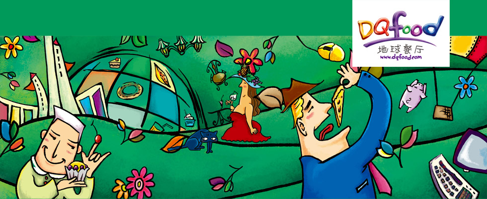 此標(biāo)志以地球的刨面為支點(diǎn),寓意地球餐廳強(qiáng)大的營銷網(wǎng)點(diǎn),DQFOOD是地球餐廳的英文縮寫,豐富的色彩分別代表了地球餐廳經(jīng)營的食物種類之多及綠色、健康、熱情歡樂的經(jīng)營理念。標(biāo)志整體造型自然生動(dòng),色彩豐富。具有很強(qiáng)的視覺沖擊力。