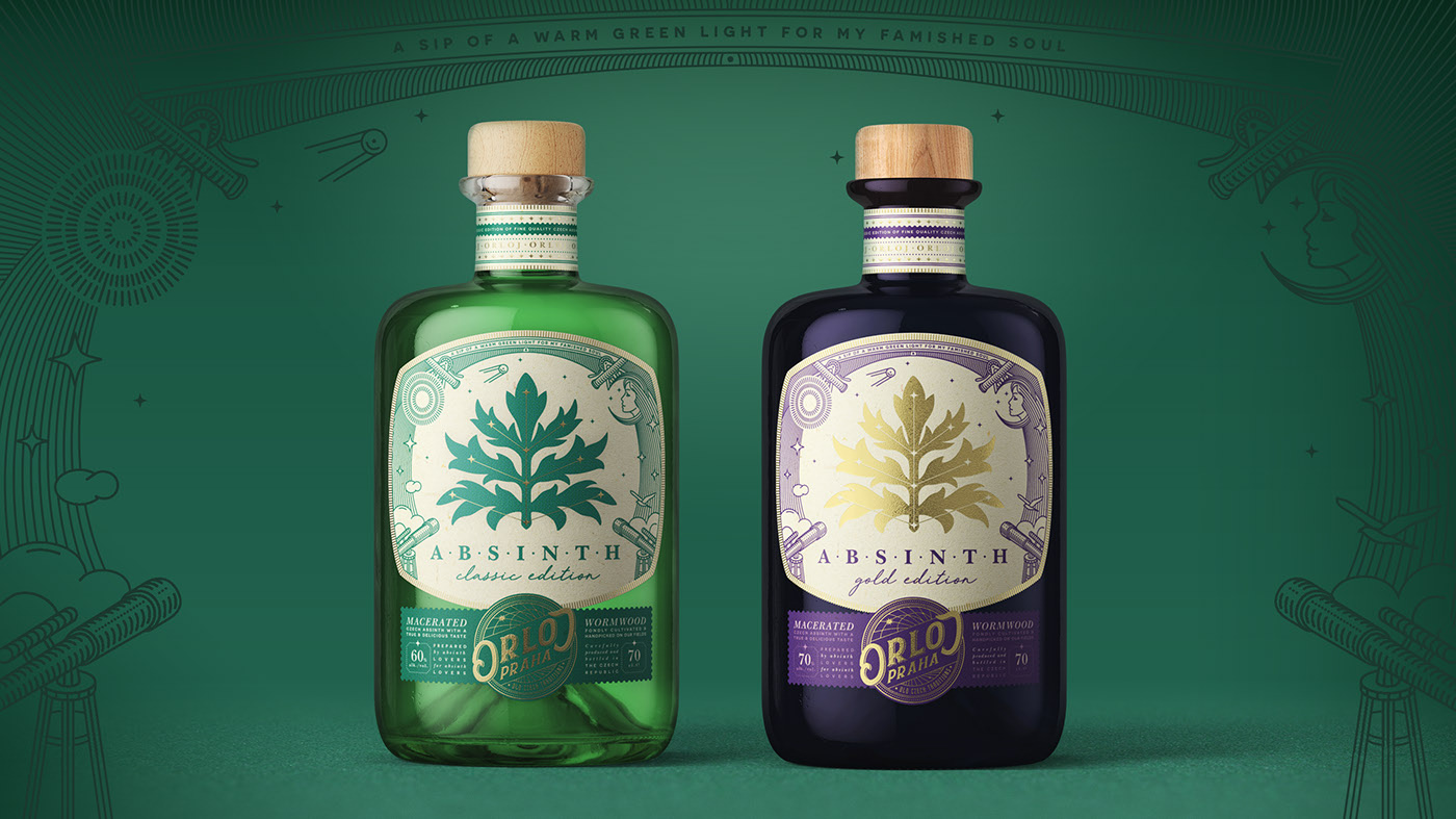 任務(wù):為傳統(tǒng)的捷克苦艾酒開(kāi)發(fā)標(biāo)簽設(shè)計(jì)。捷克共和國(guó)是一個(gè)眾所周知的苦艾生產(chǎn)國(guó),這不是什么秘密。每年都有很多游客來(lái)這里品嘗各種神秘飲料。布拉格,捷克共和國(guó)的首都,以一種中世紀(jì)的天文鐘而聞名于世,名為Orloj。這只鐘于1410年首次安裝,使它成為世界上第三座最古老的天文鐘.去年,兩家酒精生產(chǎn)商決定合作制作一款新的高質(zhì)量版的苦艾酒。他們采用了一種傳統(tǒng)的捷克苦艾汁配方,并將其與首都的象征相結(jié)合,并出現(xiàn)了新的天文苦艾酒,名為“Orloj”。它決定制作兩種版本的飲料:經(jīng)典(浸漬)和金色(蒸餾)一。我的任務(wù)是創(chuàng)建一個(gè)產(chǎn)品的標(biāo)志,標(biāo)簽設(shè)計(jì)和產(chǎn)品的基本視覺(jué)標(biāo)識(shí)。