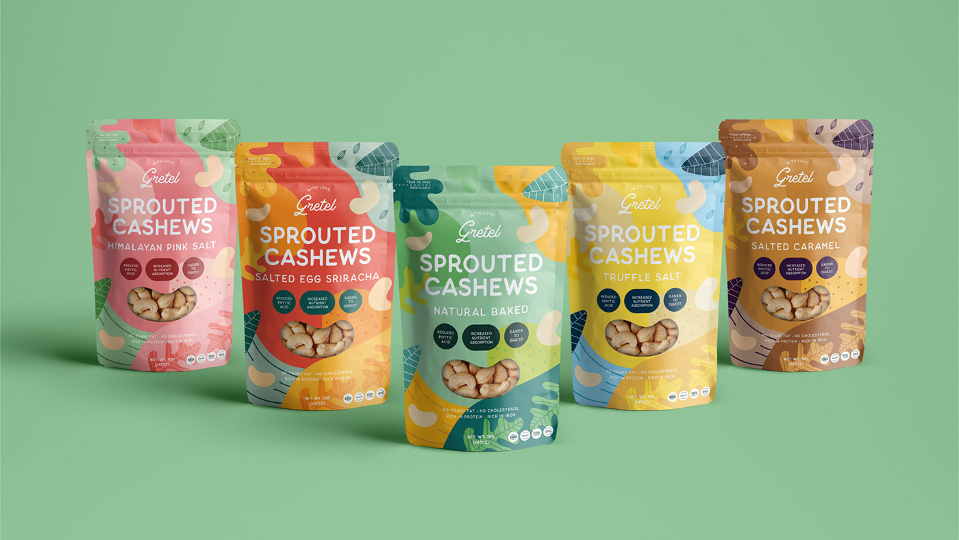 這一系列的包裝是為定制腰果品牌設計的,是真實的,誠實的和所有的自然。其目的是通過在包裝上使用明亮、充滿活力的自然色,吸引目標觀眾的注意力,從而從貨架和其他競爭對手中脫穎而出。插圖是手工繪制,以提供真實的元素,而顏色是精心挑選和匹配,以提供一個良好的代表口味。