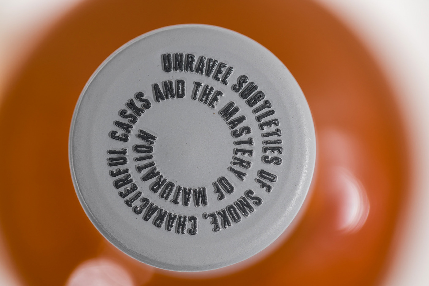 我們定制的多層瓶子的靈感來自交織在一起的各種力量,以解開不尋常的事物:微妙的煙熏味和令人驚奇的甜味;精心準(zhǔn)備和不可預(yù)測(cè)的性質(zhì);輕輕地ated大麥和不尋常的酒桶。有機(jī)的彎曲標(biāo)簽暗示一縷煙,而紙張的斑點(diǎn)紋理是通過拍攝泥炭顆粒而產(chǎn)生的。