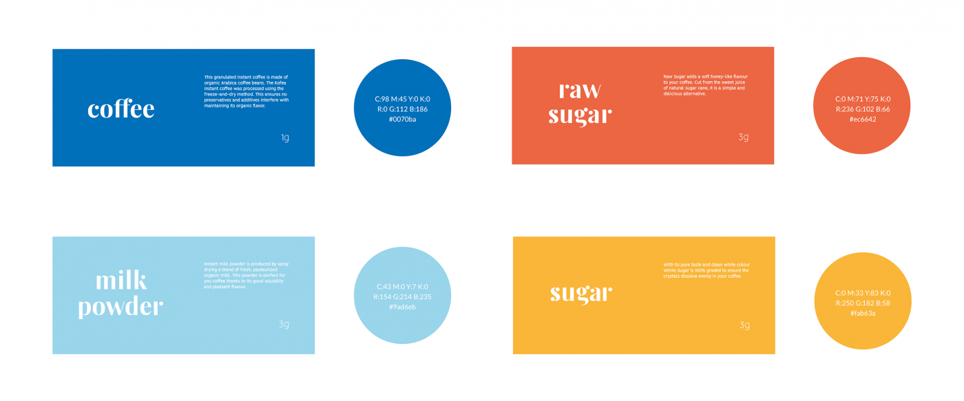 包裝中包含咖啡,白糖,原糖和奶粉,因此可以隨心所欲地對咖啡進行調(diào)味。使用非彩色紙板紙制成的外部保護包裝,Kofea具有很強的手工感。按顏色分開,每個不同的小袋在折紙風(fēng)格的折疊式包裝中都有自己的“部門”。內(nèi)部折痕在印刷圖案上隱藏了漂亮的細節(jié),而封閉式包裝僅帶有俏皮獨特的襯線徽標(biāo)。