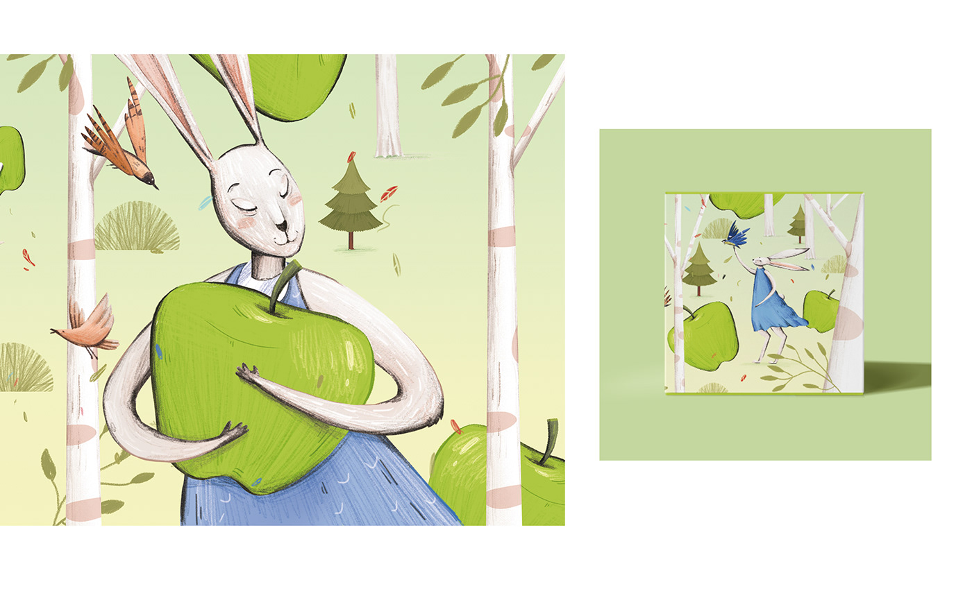 在這個(gè)設(shè)計(jì)項(xiàng)目中,我想到了要描繪一個(gè)神奇的森林。那里的動(dòng)物就像人一樣,穿著人類的衣服衣服。散步穿過(guò)她的莊園森林里有漿果,熊在吹笛。