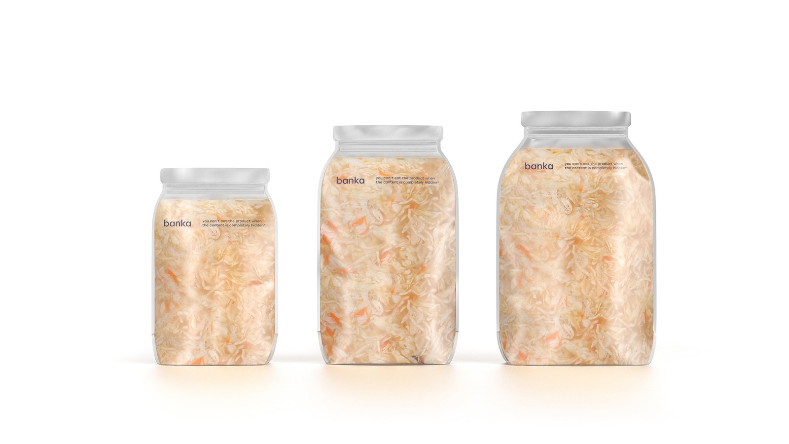 Banka具有經(jīng)典玻璃罐的形狀,在其中可以看到產(chǎn)品本身。提供了不同數(shù)量的軟包。這種形狀便于存放在冰箱中和運輸過程中。提供了一個拉鏈鎖以確保牢固。