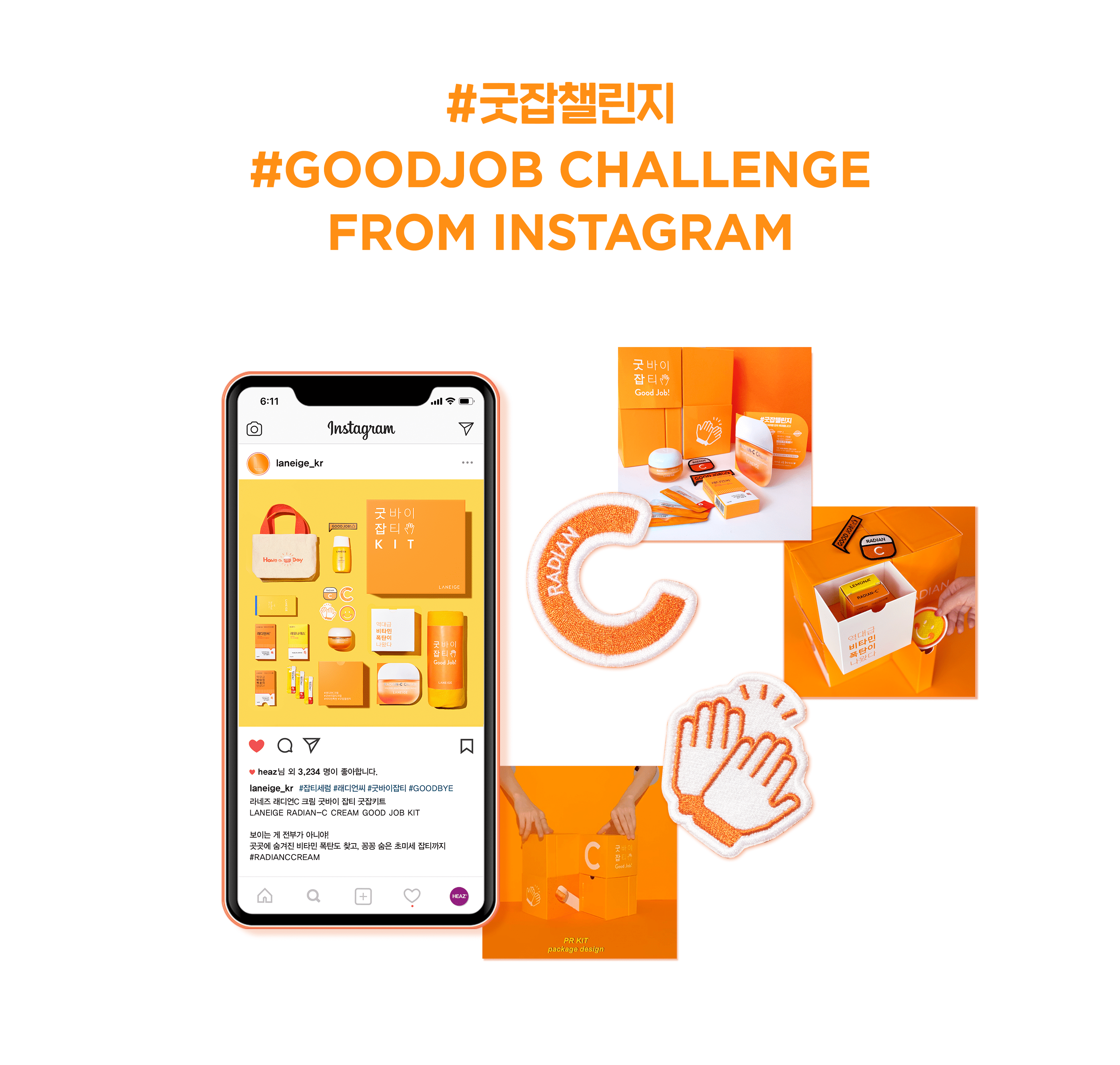 LANEIGE已發(fā)布新產(chǎn)品RADIAN-C CREAM,并已通過影響者認(rèn)證產(chǎn)品評論,并在Instagram舉辦了“ Good Job Challenge”。我們設(shè)計了該套件,以提供給成功完成挑戰(zhàn)的人。