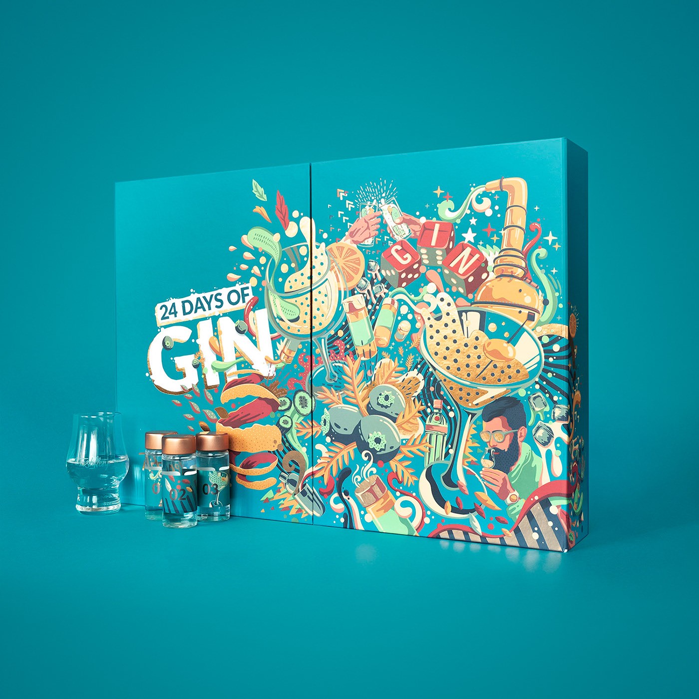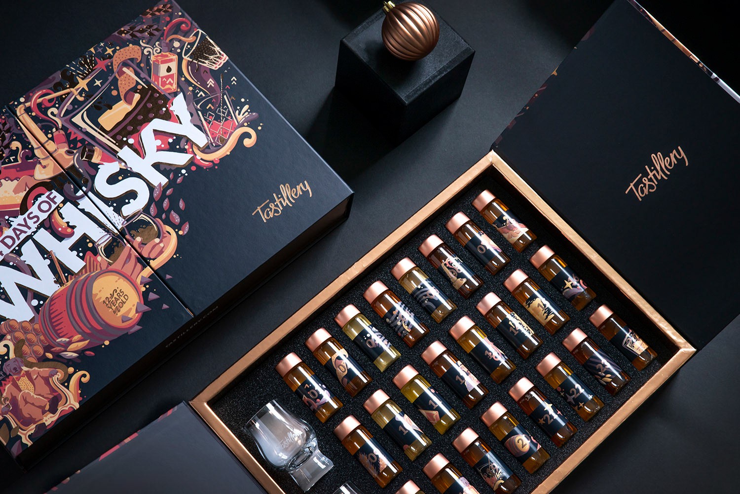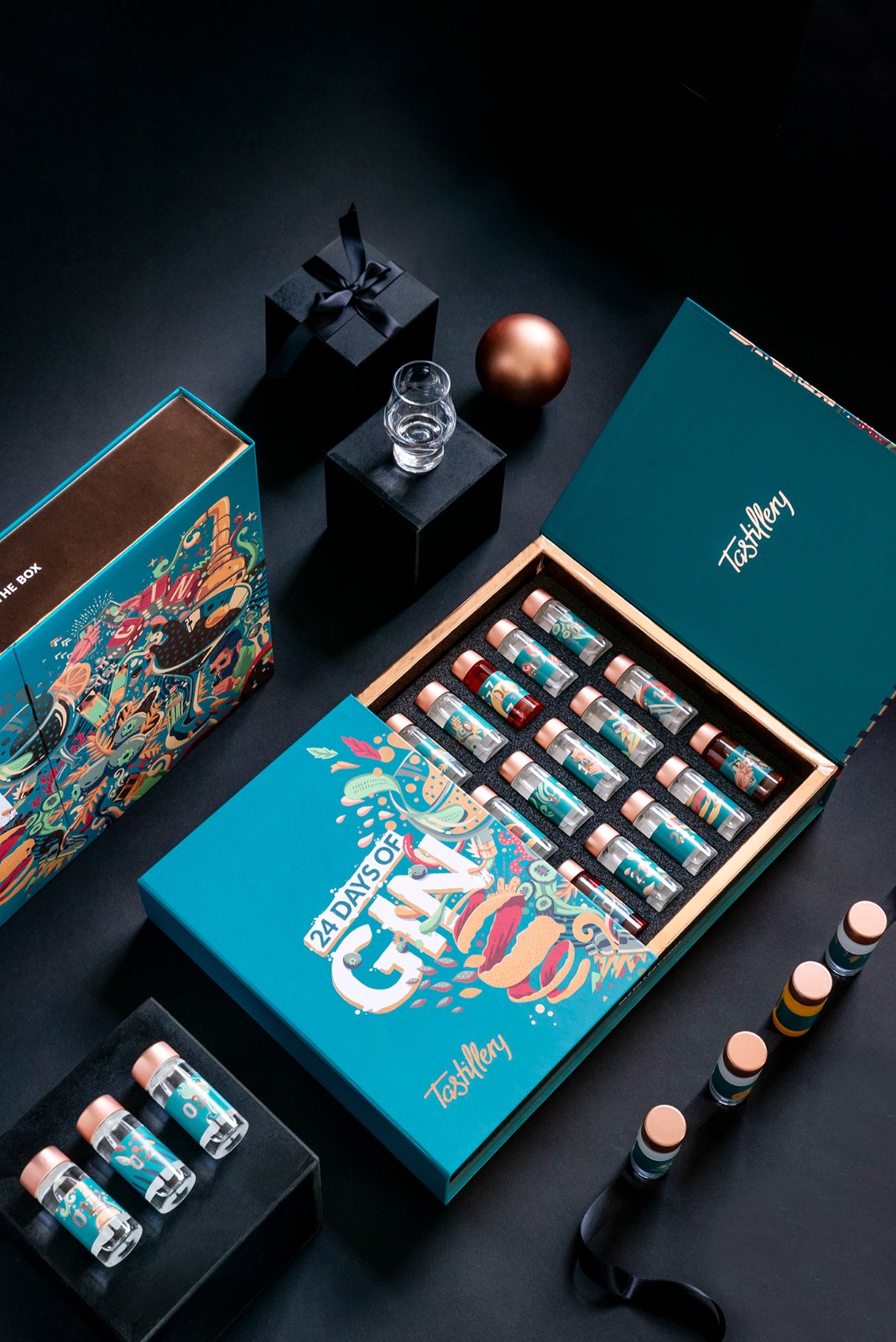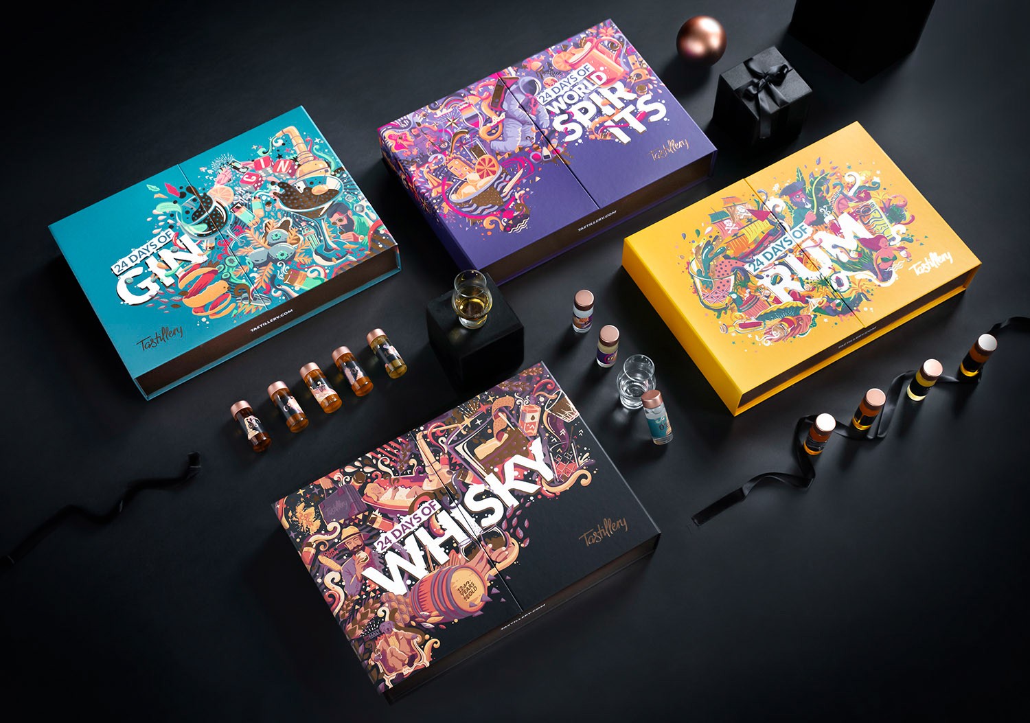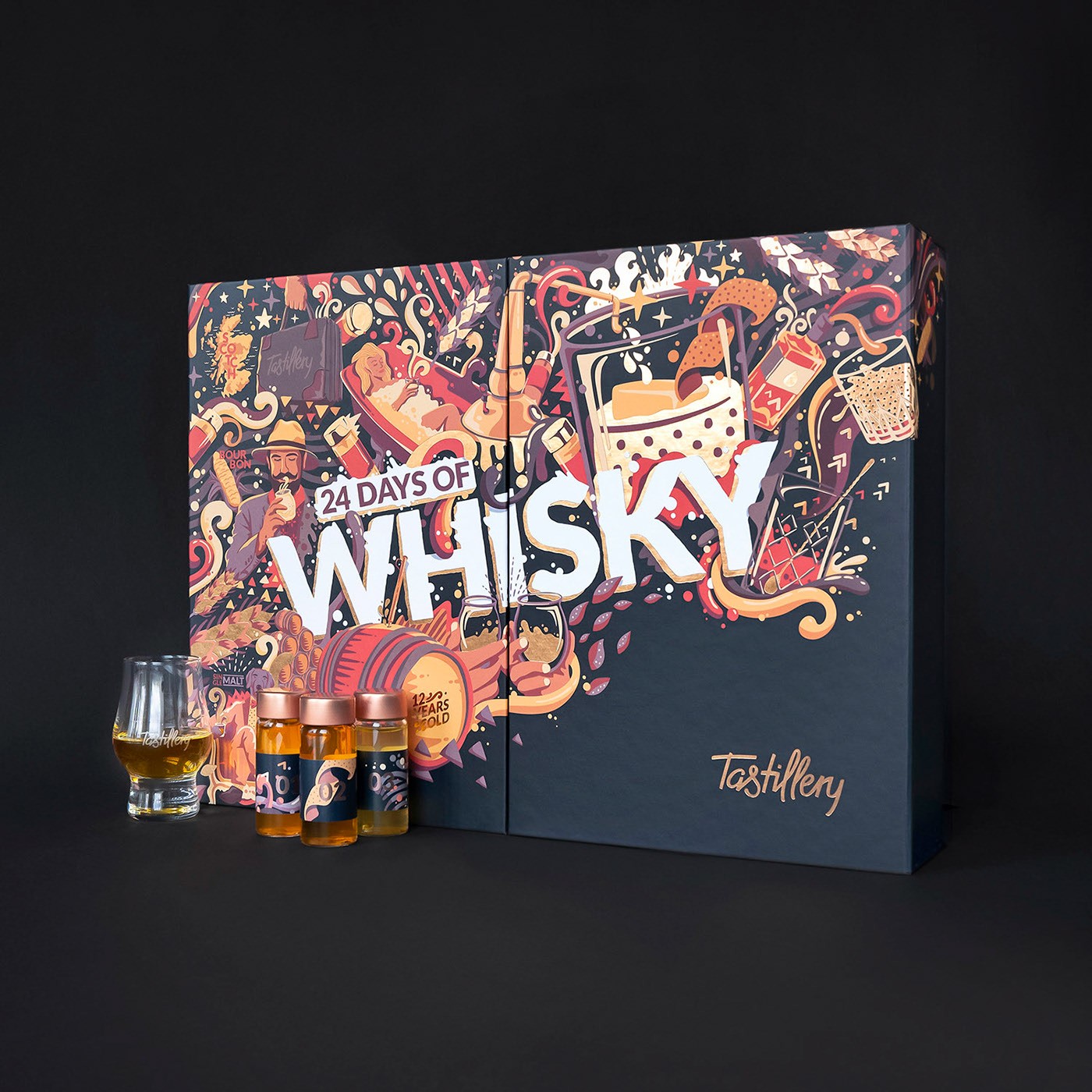 標(biāo)簽:收藏酒包裝設(shè)計欣賞 插圖 有很多元素代表每種酒飲的種類 每個盒子里有24個很棒的小酒樣本 收藏酒 試喝酒禮盒包裝設(shè)計 品牌產(chǎn)品包裝設(shè)計公司