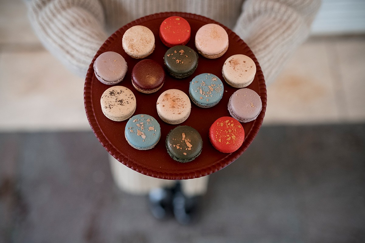 馬卡龍,又稱瑪卡龍、法式小圓餅,是一種用蛋白、杏仁粉、白砂糖和糖霜制作,并夾有水果醬或奶油的法式甜點(diǎn)??诟胸S富,外脆內(nèi)柔,外觀五彩繽紛,精致小巧。