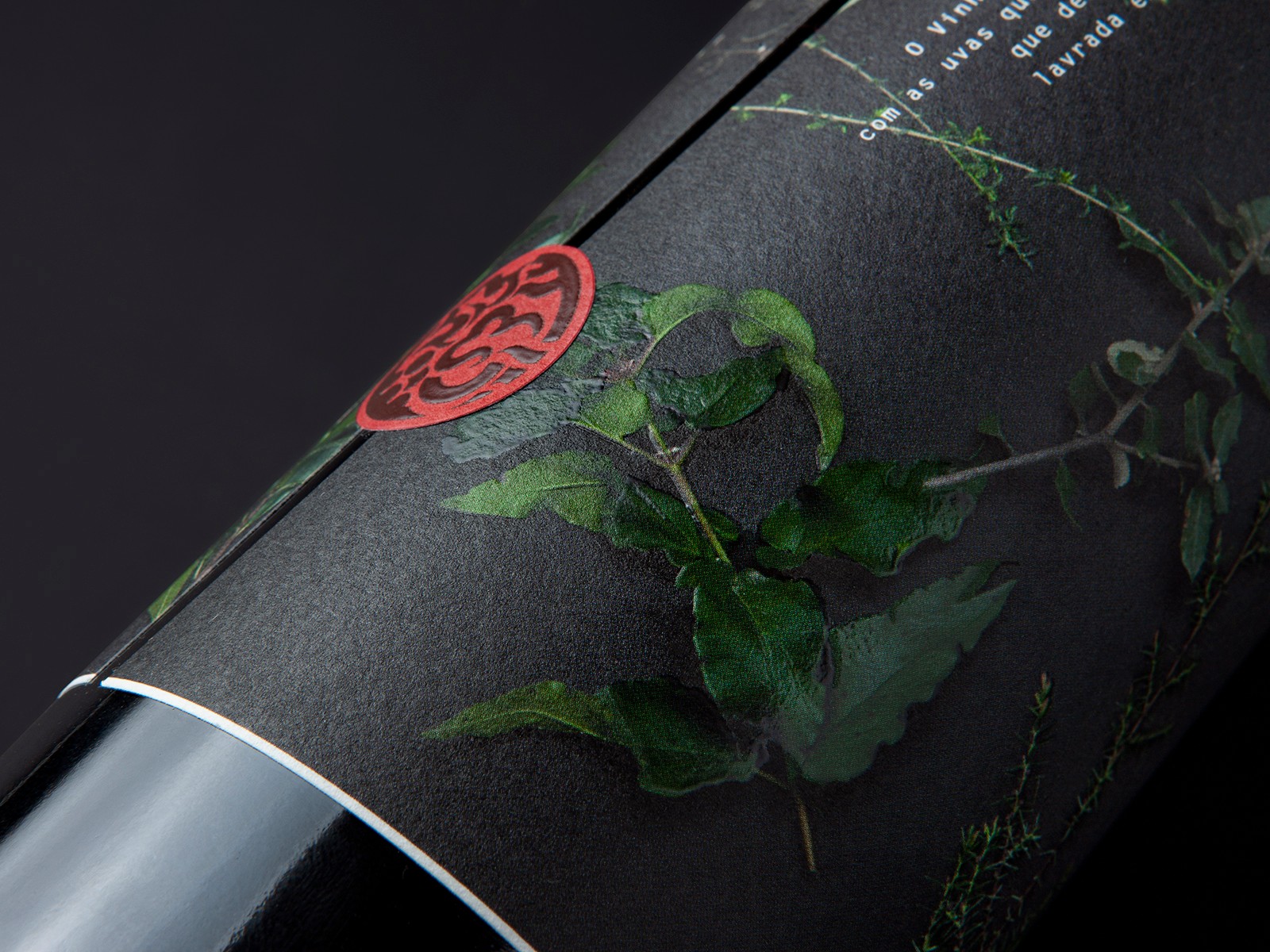“自然為您保留”是我們希望傳達的信息。目的是獲得協(xié)調(diào)一致的物理和圖形媒體的鮮明的當代形象。高大且狹窄的波爾多酒瓶可以使用大幅面的前后標簽組合,幾乎可以將其纏繞在酒瓶主體周圍。圖像占用了標簽上的所有可用空間。這是一張植物標本室風格的照片,其中精選了葡萄酒莊園“自然保護區(qū)”中發(fā)現(xiàn)的一些植物。文本的布局突出了標簽的高度,并與背景圖像的圖案保持一致,同時尊重前后酒標內(nèi)容的層次結(jié)構(gòu)。