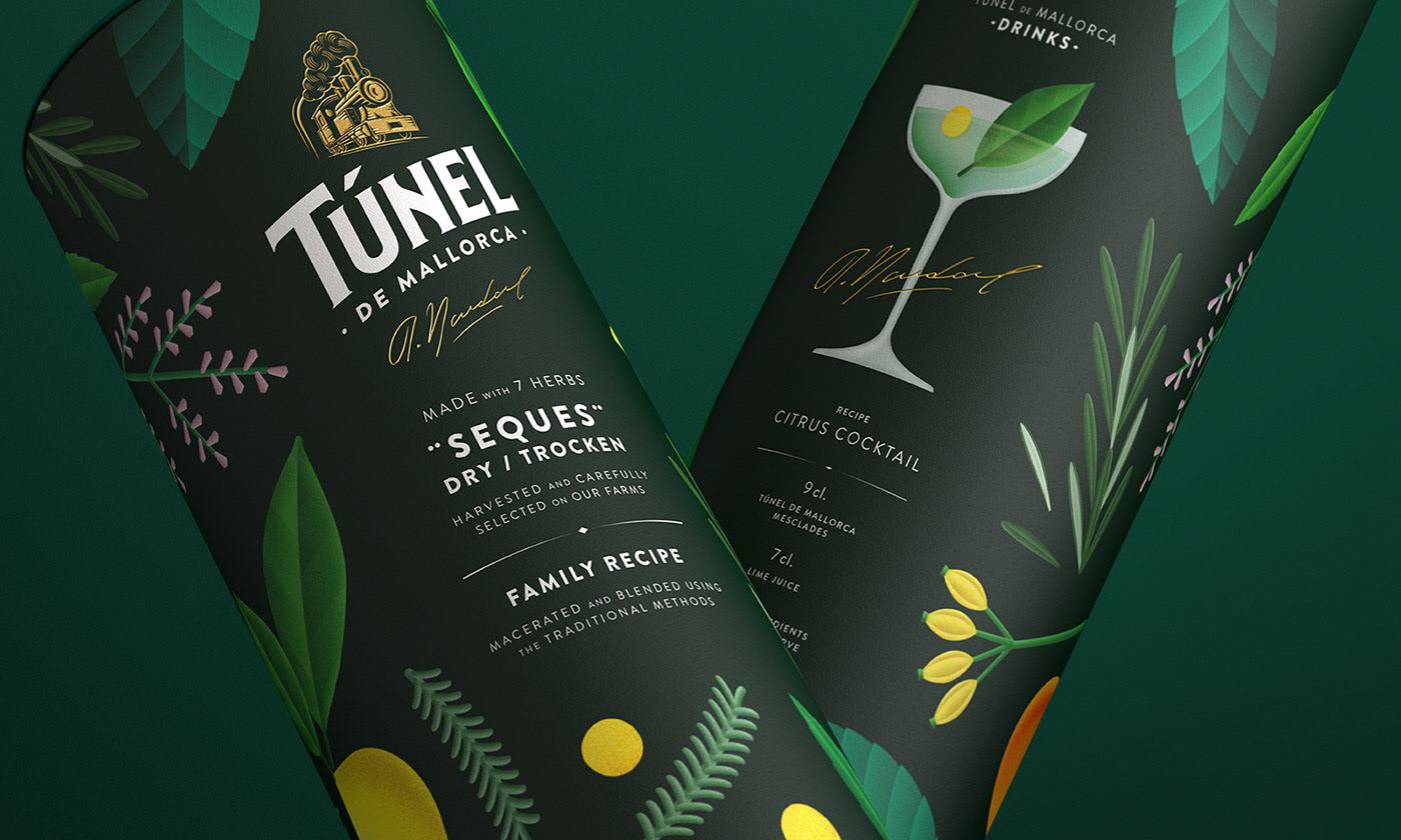 英國(guó)工作室 Simil為酒品牌 TúneldeMallorca提供的包裝設(shè)計(jì)。