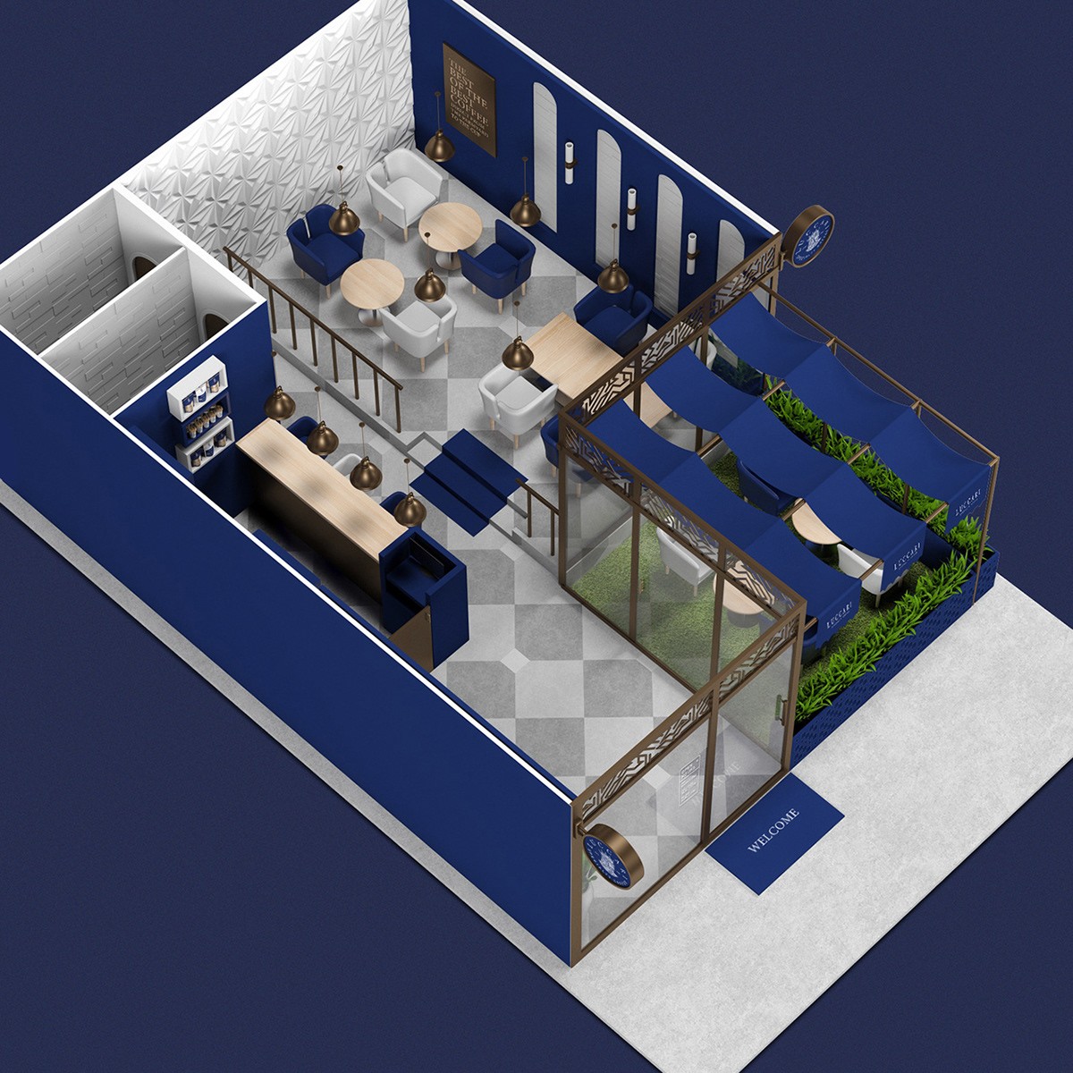 設(shè)計(jì)創(chuàng)意一個(gè)代表咖啡之王的符號(hào),賦予其挑剔,獨(dú)特和富麗堂皇的個(gè)性。此符號(hào)伴隨著整個(gè)企業(yè),豪華和精選概念的資源,藍(lán)色,圖案和紋理由獨(dú)特的力量和優(yōu)越性符號(hào)塑造而成,例如皇冠,員工,城堡的塔樓,標(biāo)志和旗幟。它還考慮到了鍍金或電鍍等金屬化印刷品,以進(jìn)一步體現(xiàn)精選概念。