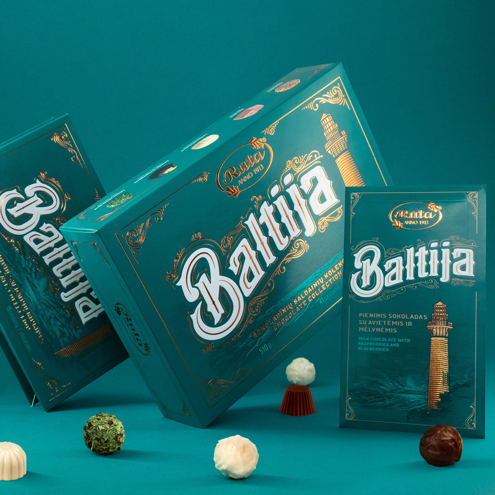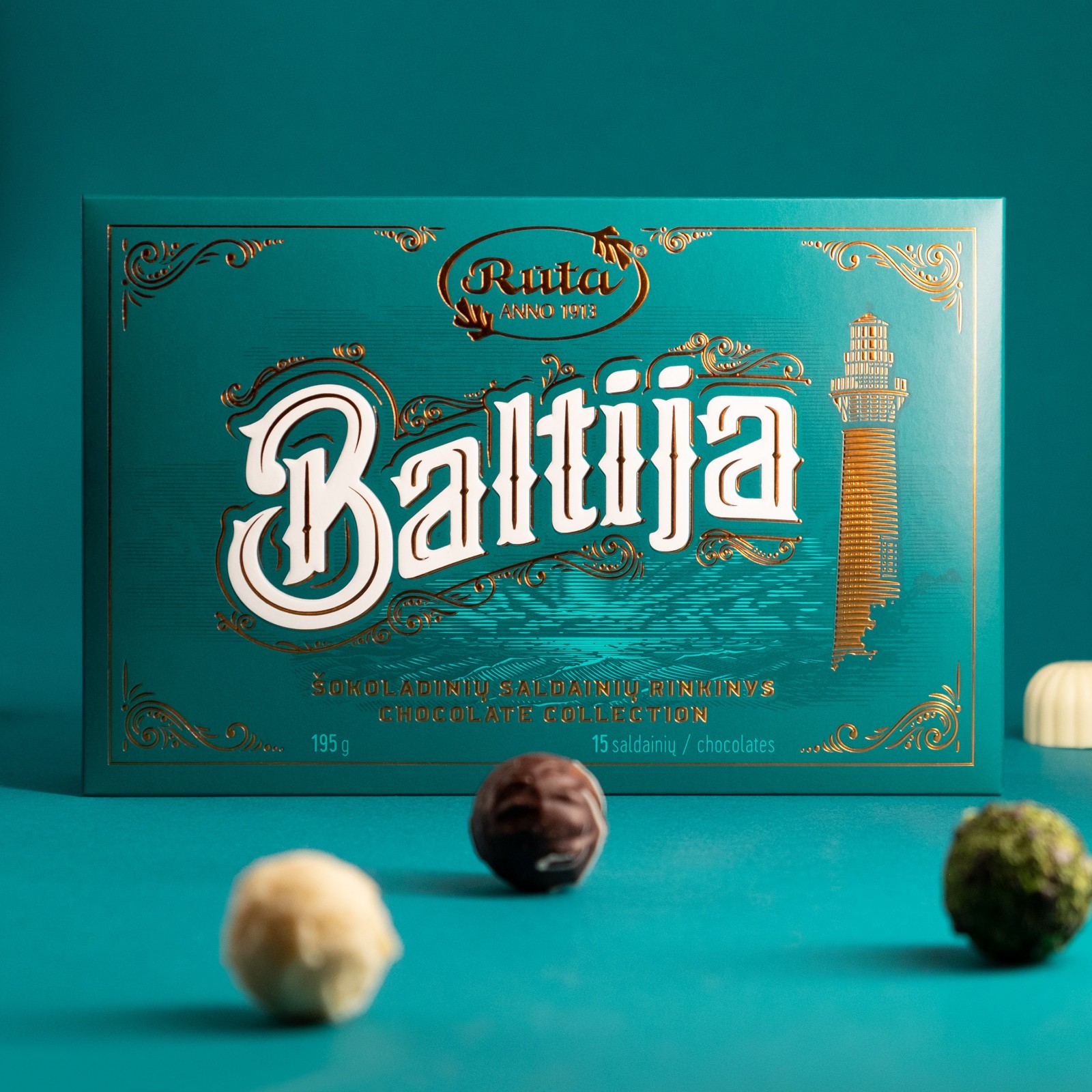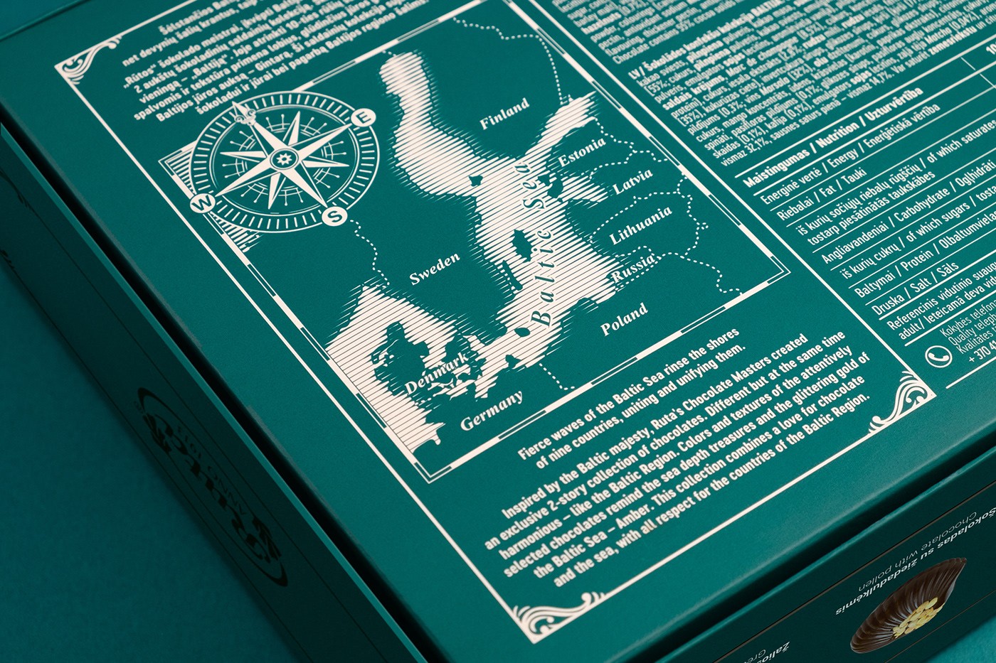 Baltija來自立陶宛語中的波羅的海。海洋是該項(xiàng)目的主要靈感,它是鄰近的8個(gè)國家,它們都是不同的。海洋是平靜的,不具有自己的身份。因此,燈塔被選為包裝的主要標(biāo)志。Sea也是選色的靈感來源。深綠色的藍(lán)色給人以活力和奢華的感覺,使其在波羅的海地區(qū)的糖果包裝中脫穎而出。