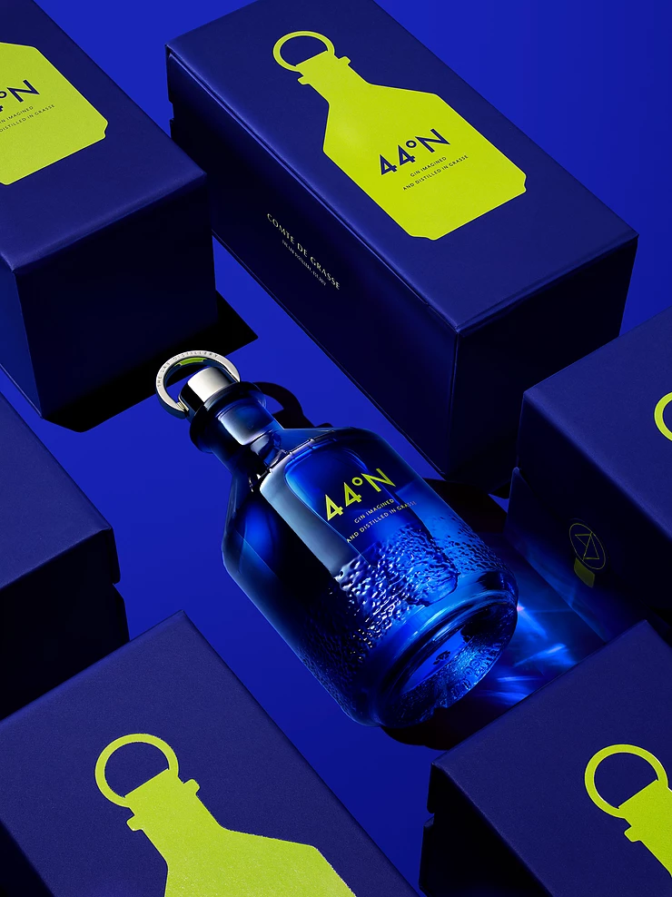 44度N酒則是通過酒瓶型設(shè)計,完美打造獨特符號,看到這個藍,以及這個帶環(huán)的蓋,就能記住這個品牌,極簡主義,就是能讓人快速記住所有信息??此茮]有什么設(shè)計,但上面每一個細節(jié)都是精心設(shè)計,爆贊