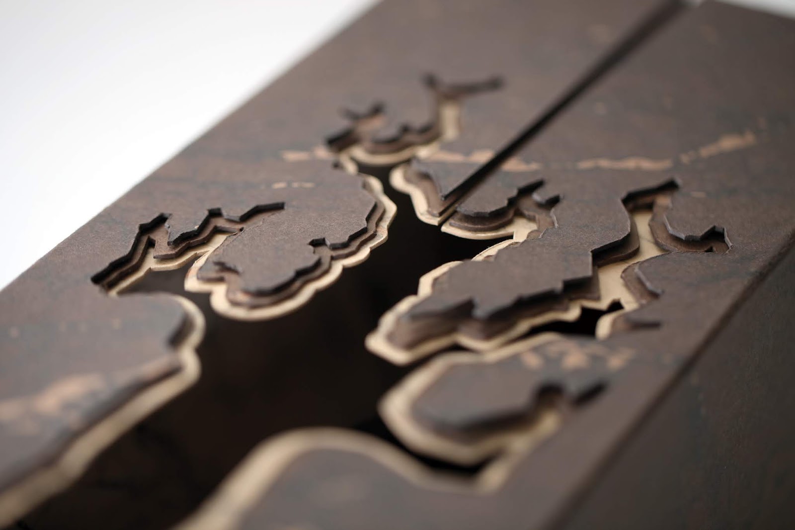 這款伏特加酒的酒盒則是巧妙組合,三合一包裝展示,每一款都有一個獨特的指紋,寓意著每一款都是限量獨特的酒,印刷包材:鐳射銀卡,正面指紋工藝用了起鼓,局部UV,指紋則面用了透印方式,將指紋五顏色六彩呈現(xiàn),在不同光線會有變化,非常有意思。