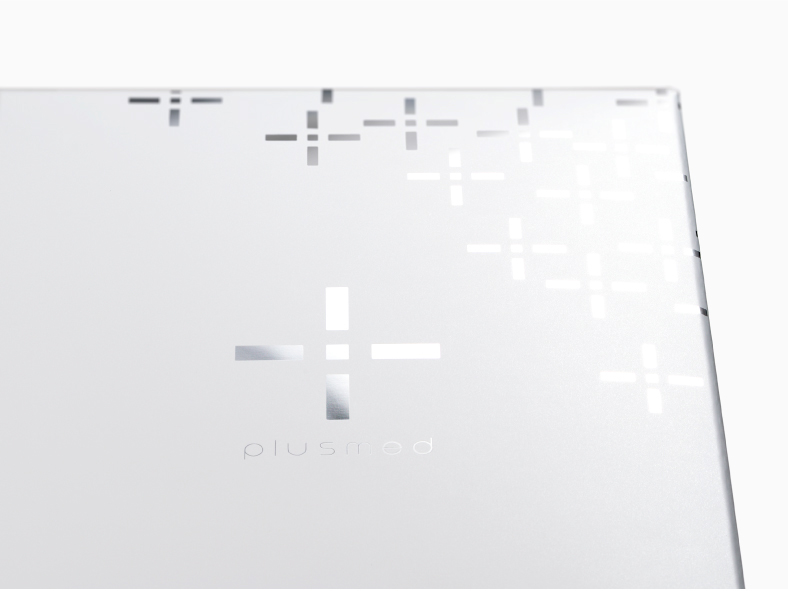 將醫(yī)學(xué)十字架創(chuàng)意極簡(jiǎn)形態(tài),中間的支點(diǎn)是不變的初心,四條線也有光線的感覺,與醫(yī)學(xué)美容行業(yè)相符,PLUSMED美容產(chǎn)品的創(chuàng)意包裝,銀卡紙禮盒,高端清爽,大氣時(shí)尚。