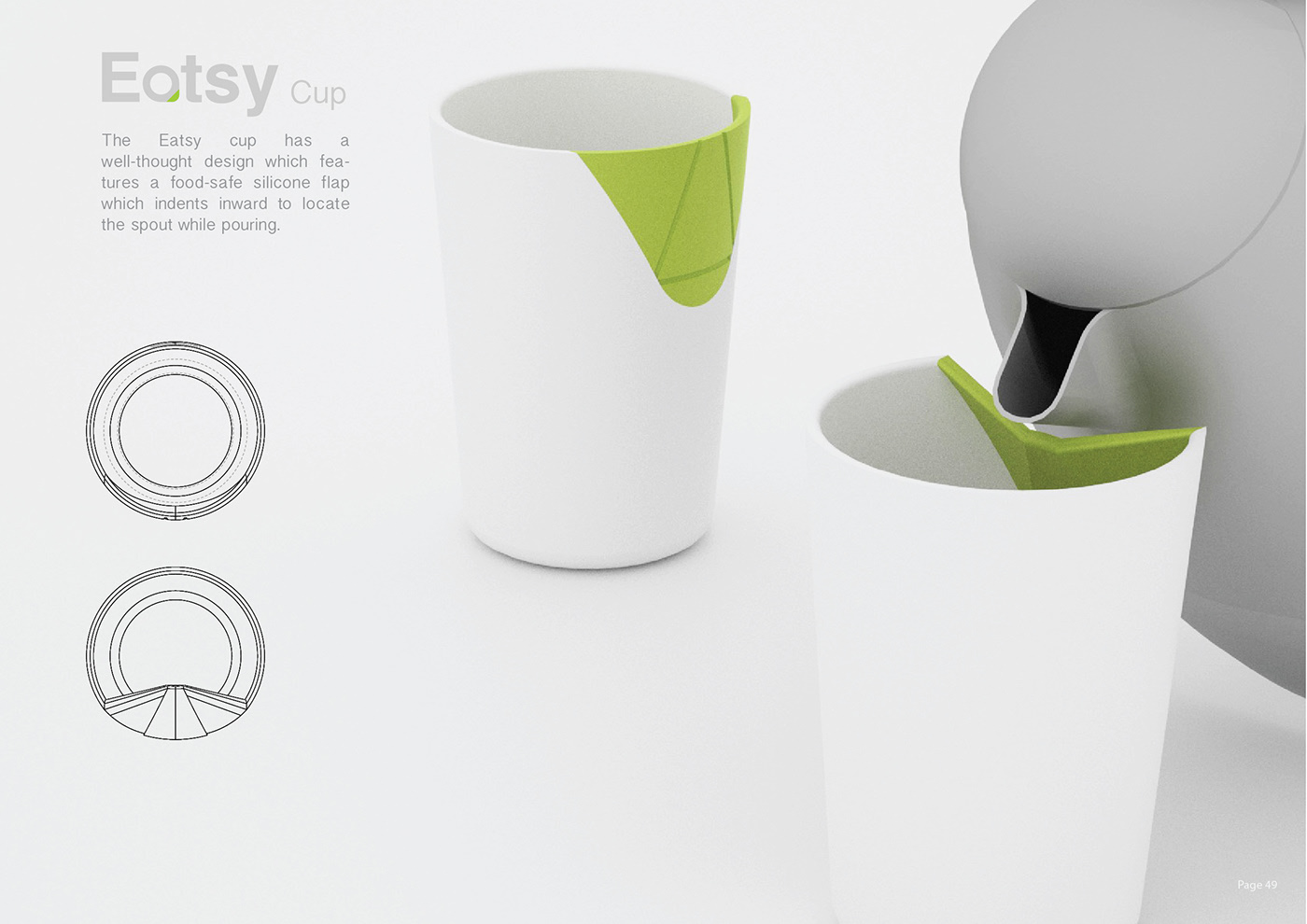 Eatsy 杯子采用深思熟慮的設(shè)計(jì),具有食品安全硅膠翻蓋,向內(nèi)縮進(jìn)以固定壺嘴以進(jìn)行傾倒。