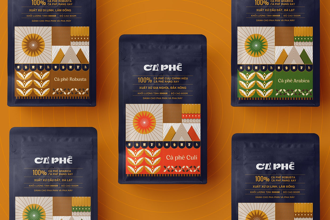 “Sunburned Plateau”是源自Dak Nong、Lam Dong和Da Lat的Culi、Arabica、Robusta 3個(gè)咖啡產(chǎn)品線的包裝概念和商標(biāo)。該項(xiàng)目的靈感來自上述三個(gè)地區(qū)的典型元素:高原、咖啡和陽(yáng)光。