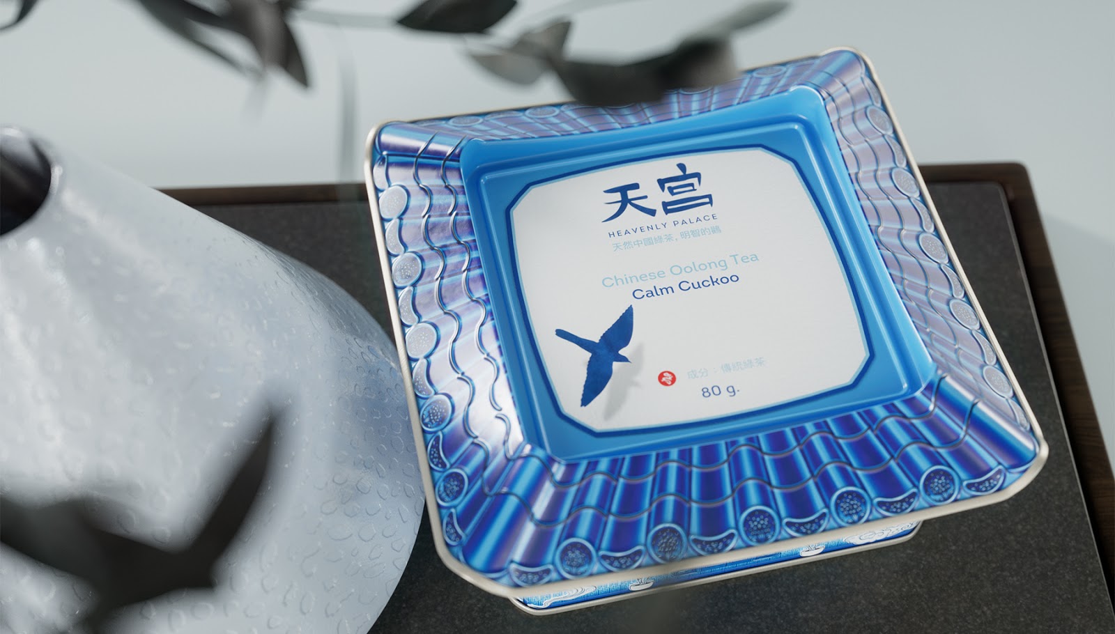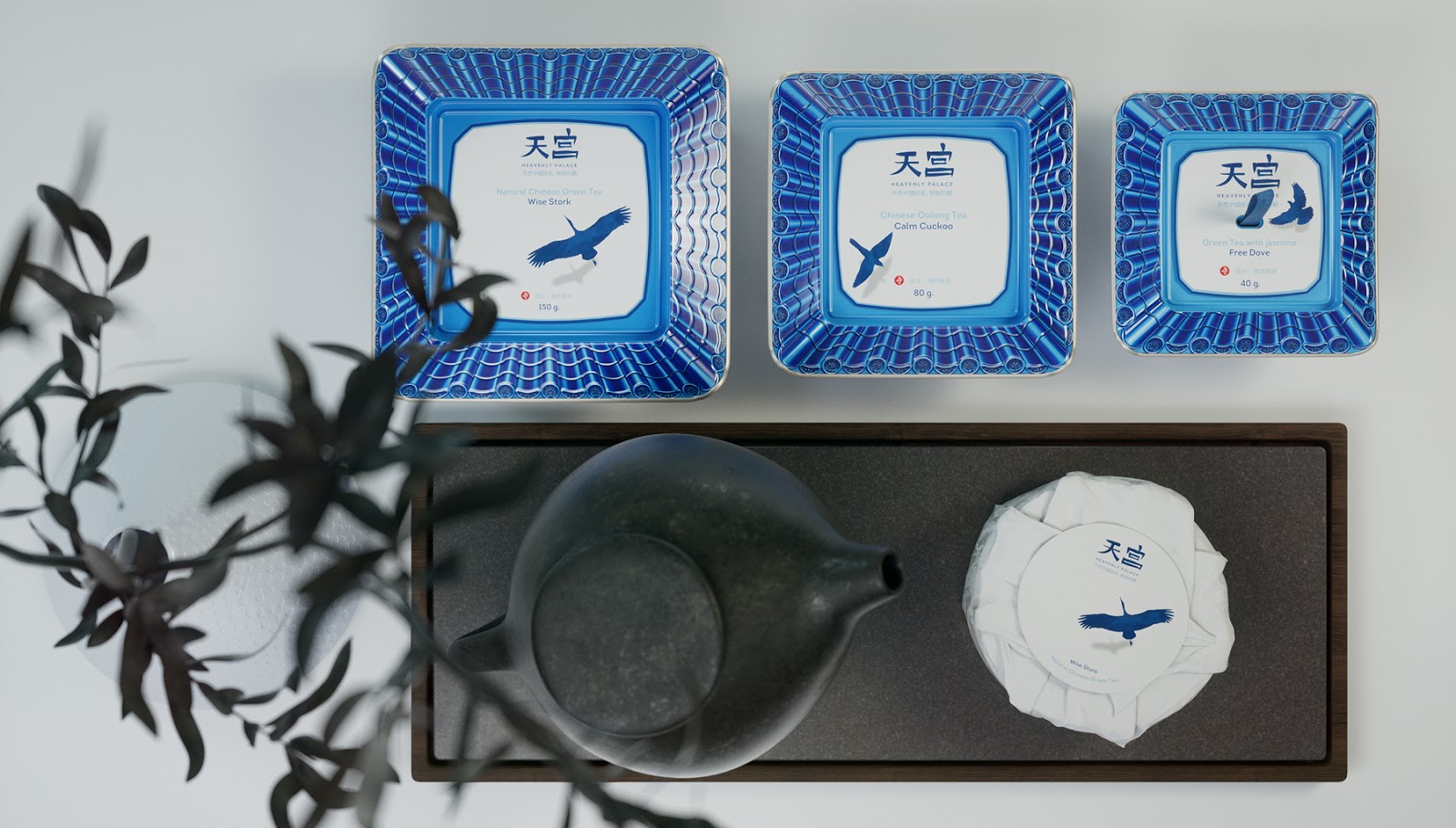 房屋的外墻裝飾有詳細的插圖,靈感來自古代大師的中國古典圖案。茶蒸云中的藝妓、竹瓦、中國燈籠——一切都適合平靜的思想和愉快的喝茶。產品線包括三個品種的中國傳統(tǒng)茶:經典綠茶“智鸛”、烏龍茶“平靜杜鵑”和茉莉花綠茶。茶的品種以生活在中國的鳥類形象來比喻——聰明的鸛、平靜的杜鵑和自由的鴿子。設計師的想法是,一只飛過有蓋房子的鳥會投下陰影,房子越高,鳥到屋頂表面的距離越小,投下的陰影越短。